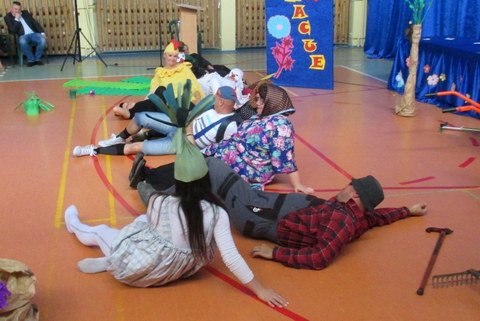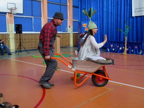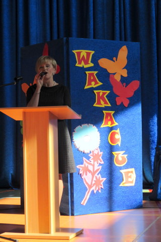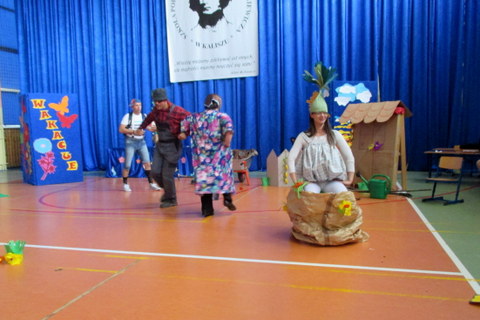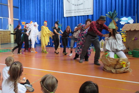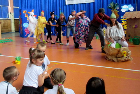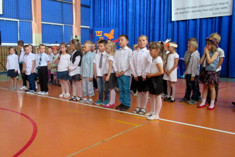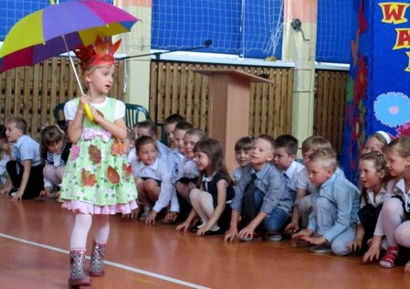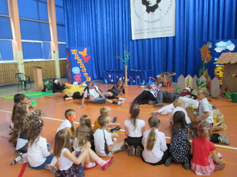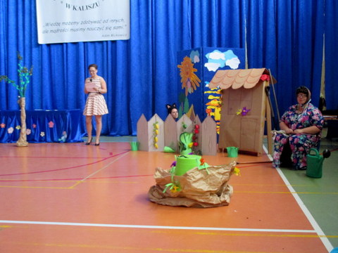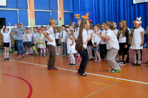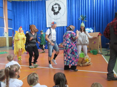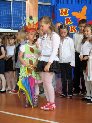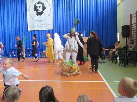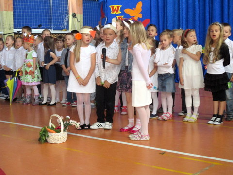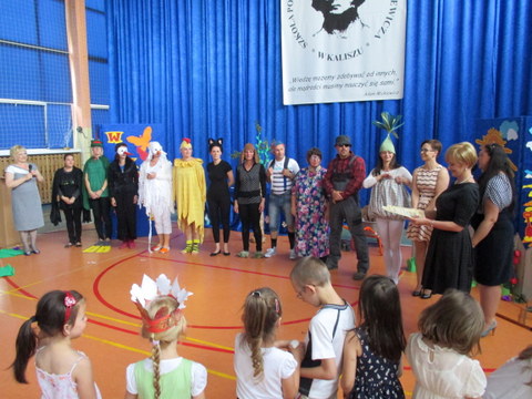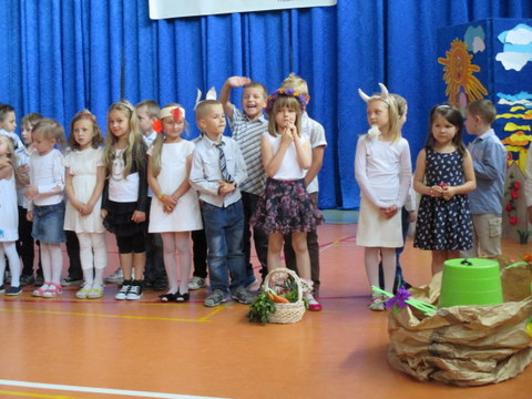 Uroczystość zakończenia roku szkolnego 2013/2014 w oddziałach przedszkolnych rozpoczęła wicedyrektor Jadwiga Wojtyś. Powitała wszystkich przybyłych na uroczystość gości, nauczycieli, rodziców oraz dzieci. W krótkiej przemowie podkreśliła jak ważną rolę w życiu dziecka odgrywa edukacja przedszkolna. Podsumowała najważniejsze wydarzenia, które miały miejsce podczas dziesięciu miesięcy. Podziękowała nauczycielom, rodzicom i dzieciom za całoroczny trud. Życzyła wspaniałych wakacji. Zaproszone na scenę i zachęcone gorącymi brawami przedszkolaki zaprezentowały program artystyczny. Pod czujnym okiem wychowawców wspólnie zaśpiewały poznane piosenki, zaprezentowały tańce, recytowały wiersze. Prawdziwym zaskoczeniem dla wszystkich okazała się jednak druga część uroczystości. Rodzice z oddziału przedszkolnego 02 przygotowali dla swoich pociech przedstawienie pt. „Rzepka” wg Juliana Tuwima. Przebrani w śmieszne kostiumy, wyposażeni w rekwizyty debiutujący aktorzy dołożyli wszelkich starań, by jak najlepiej odegrać swoje role przed małymi widzami. Przedszkolaki nie tylko obserwowały poczynania swoich rodziców na scenie, ale też brały czynny udział w samym przedstawieniu. Jedna z mam, która czytała tekst wiersza Tuwima zachęcała dzieci do wspólnego wywoływania kolejnych postaci na tzw. „przyczepkę”. Wszyscy pomysłowi rodzice zostali nagrodzeni brawami i pamiątkowymi dyplomami. Po zakończonej części artystycznej dzieci wraz z wychowawcami udały się do klas, gdzie otrzymały dyplomy ukończenia oddziału przedszkolnego.