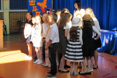 27 czerwca 2014 r. o godz. 8.00 odbyła się uroczystość zakończenia roku szkolnego 2013/2014 dla uczniów kl. I-III. Po wprowadzeniu sztandaru szkoły i odśpiewaniu hymnu państwowego, głos zabrała wicedyrektor Jadwiga Wojtyś. Omówiła wszystkie ważne wydarzenia z życia szkoły, jakie miały miejsce w roku szkolnym 2013/2014. Za trud pracy nad kształtowaniem młodych umysłów podziękowała nauczycielom oraz rodzicom, którzy aktywnie włączali się w życie szkoły. Nie zabrakło oczywiście miłych słów, kierowanych do uczniów. Po przemówieniu, tradycyjnie jak co roku, nastąpiło wręczenie nagród książkowych wyróżnionym uczniom klas trzecich oraz listów gratulacyjnych ich rodzicom. Była to niezwykle podniosła chwila zarówno dla uczniów, jak i ich rodziców. Uroczystość uświetnił występ artystyczny uczniów klasy 2c i klasy 3d przygotowany pod kierunkiem pań Grażyny Wielgosz i Anny Malinowskiej-Leki oraz Sylwii Pytlińskiej. Krótki program artystyczny był pożegnaniem szkoły na czas wakacji. Uczniowie przypomnieli również swoim rówieśnikom kilka zasad bezpiecznego wypoczynku podczas wakacji, w związku z realizacją projektu edukacyjnego „Bezpieczne wakacje”. Życzymy wspaniałych wakacji!