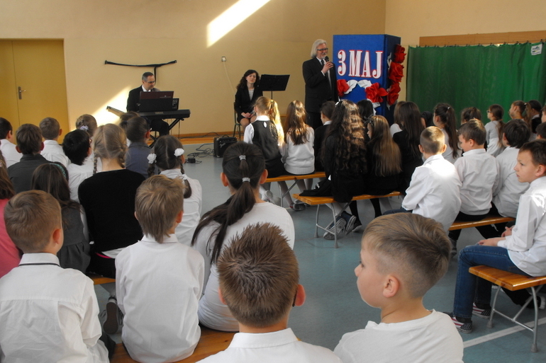 Z okazji 224 rocznicy uchwalenia Konstytucji 3 Maja uczniowie naszej szkoły uczestniczyli w koncercie edukacyjnym pt. „Wszystko co nasze, Polsce oddamy”.