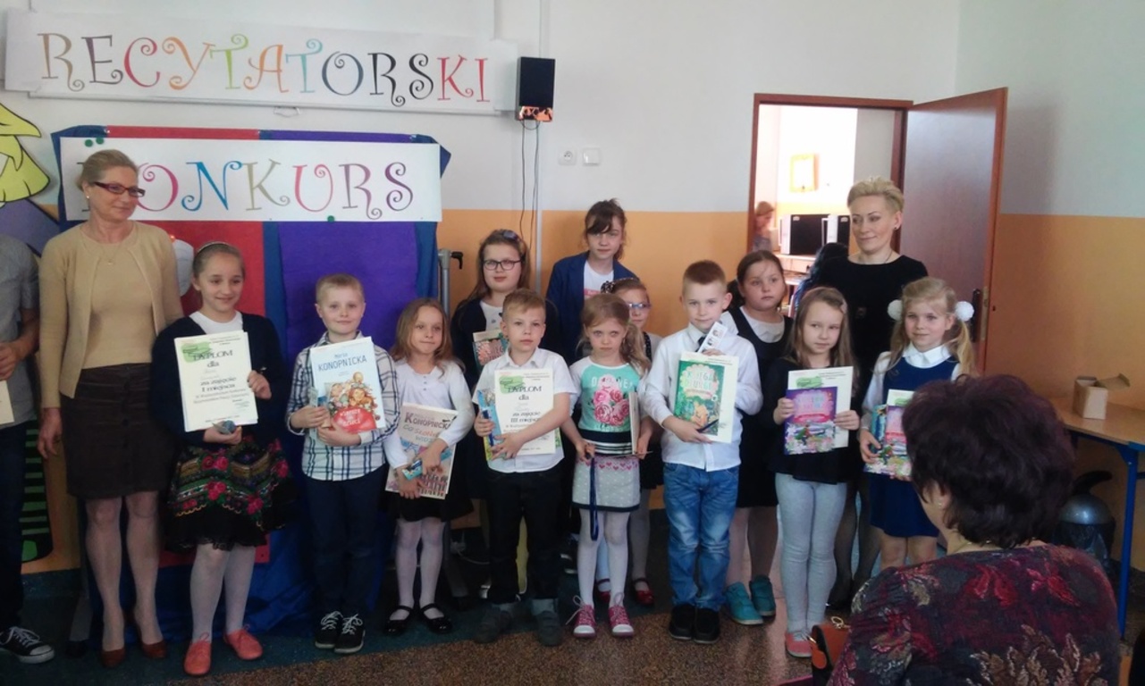 27 kwietnia 2015 r. w Szkole Podstawowej nr 14 w Kaliszu odbył się III Międzyszkolny Konkurs Recytatorski Poezji Dziecięcej. Reprezentantami naszej szkoły, wyłonionymi podczas szkolnych eliminacji, byli: Iga Malandy (1a) i Wiktor Wojterski (1a). Uczniowie zaprezentowali wiersze: Iga Malandy – „Noc” A. Frączek, „Katar” J. Brzechwa oraz Wiktor Wojterski – „Leśny doktor” L. Sulima-Ciundziewicki, „Moje gwiazdy” L. Sulima-Ciundziewicki. Przygotowania do konkursu odbyły się pod okiem pani Anny Malinowskiej-Leki. Prezentowane przez uczestników utwory oceniane były według kryteriów: stopień opanowania pamięciowego tekstu, poprawna i płynna recytacja, dobór repertuaru do wieku i możliwości uczestnika, świadome używanie środków ekspresji w interpretacji tekstu oraz ogólne wrażenia artystyczne. Wśród laureatów konkursu znalazła się Iga Malandy, która zajęła II miejsce. Serdecznie gratulujemy!