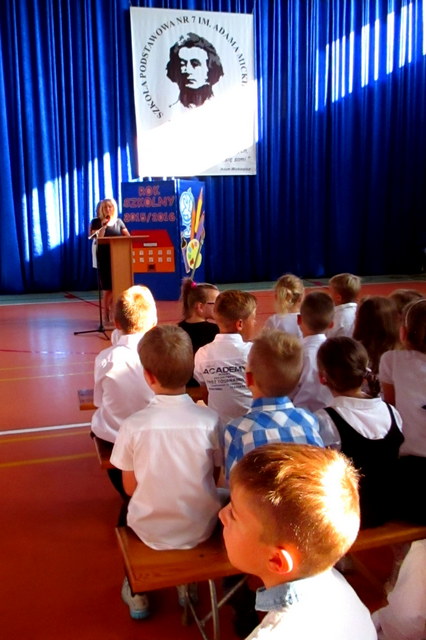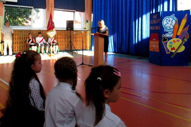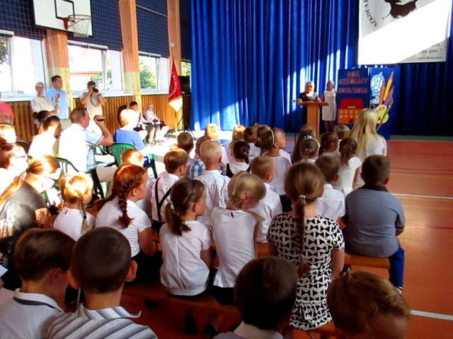 Pierwszy dzwonek rozpoczynający rok szkolny 2015/2016 w naszej szkole zabrzmiał o godz. 8.30. Uroczystej inauguracji nowego roku szkolnego (kl.1-3 i oddział przedszkolny) dokonała wicedyrektor szkoły Jadwiga Wojtyś. Serdecznie powitała wszystkich przybyłych na tę uroczystość, a szczególnie pierwszoklasistów i dzieci z oddziału przedszkolnego. Przedstawiała najważniejsze informacje dotyczące organizacji pracy szkoły w bieżącym roku szkolnym. Przekazała życzenia nauczycielom, rodzicom i uczniom. Następnie uczniowie klasy 3c przedstawili program artystyczny przygotowany pod kierunkiem pani Teresy Pogorzelec. Rocznicę wybuchu II wojny światowej upamiętniono minutą ciszy. Po części oficjalnej uczniowie udali się do sal lekcyjnych na spotkania z wychowawcami.