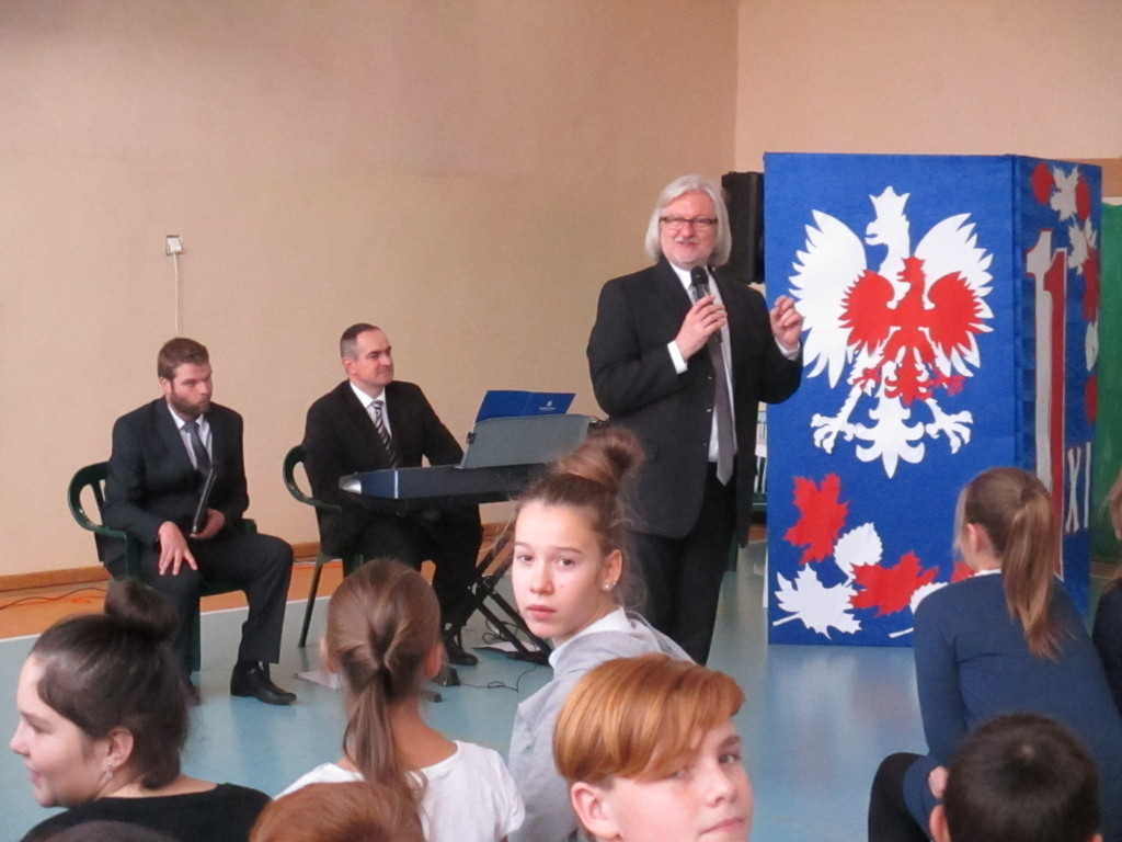 Z okazji 97 rocznicy odzyskania Niepodległości odbył się w naszej szkole koncert edukacyjny. Prelegent p. Marek Łakomy przybliżył dzieciom ważne wydarzenia z historii Polski. Uczniowie wysłuchali wiązanki pięknych pieśni patriotycznych.