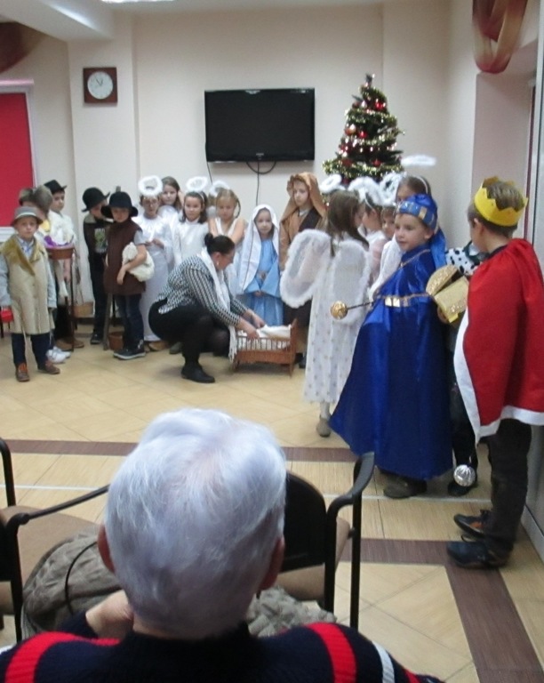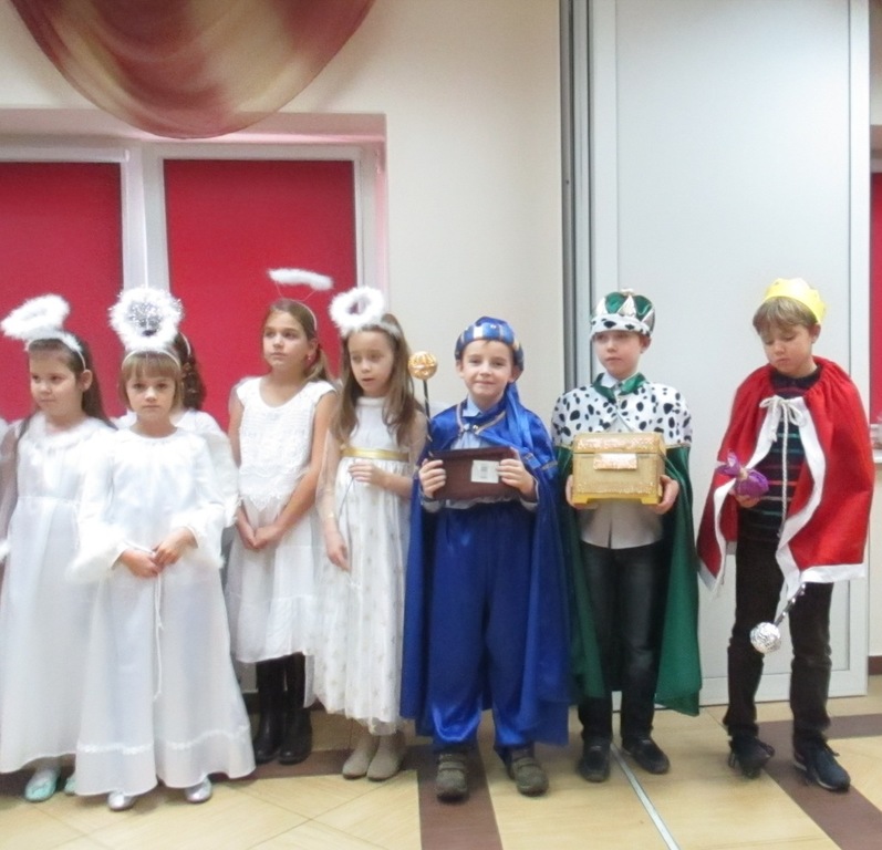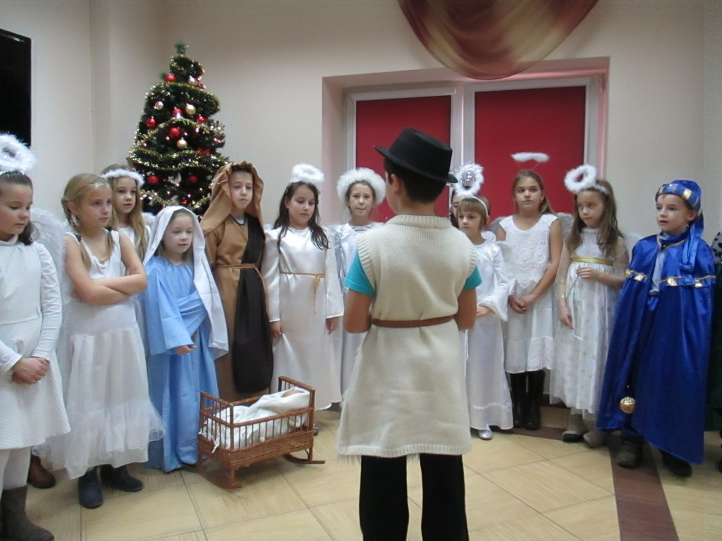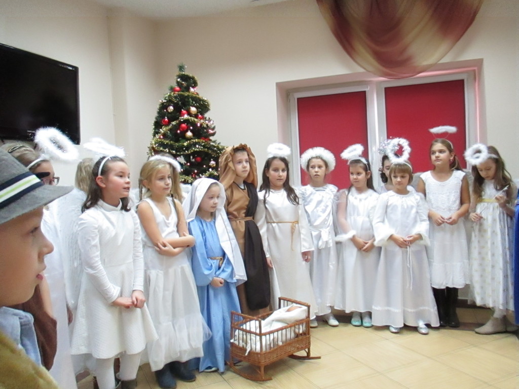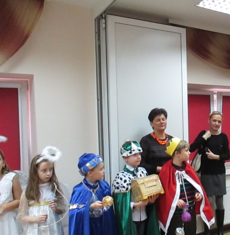 Z okazji zbliżających się Świąt Bożego Narodzenia 18 grudnia 2015 r. uczniowie klasy 2b zaprezentowali w MOPS w Kaliszu Jasełka. Przedstawienie słowno - muzyczne przygotowane pod kierunkiem Kamili Krystery było wyjątkowe. Mali aktorzy zaprezentowali się świetnie. Dzieci wręczyły również zebranym gościom oraz pracownikom MOPS własnoręcznie wykonane kartki świąteczne z życzeniami. Spotkanie zakończyło się wspólnym poczęstunkiem. Dziękujemy rodzicom klasy 2b za pomoc w przygotowaniu potrzebnych strojów i rekwizytów oraz opiekę nad dziećmi podczas wizyty w MOPS w Kaliszu.