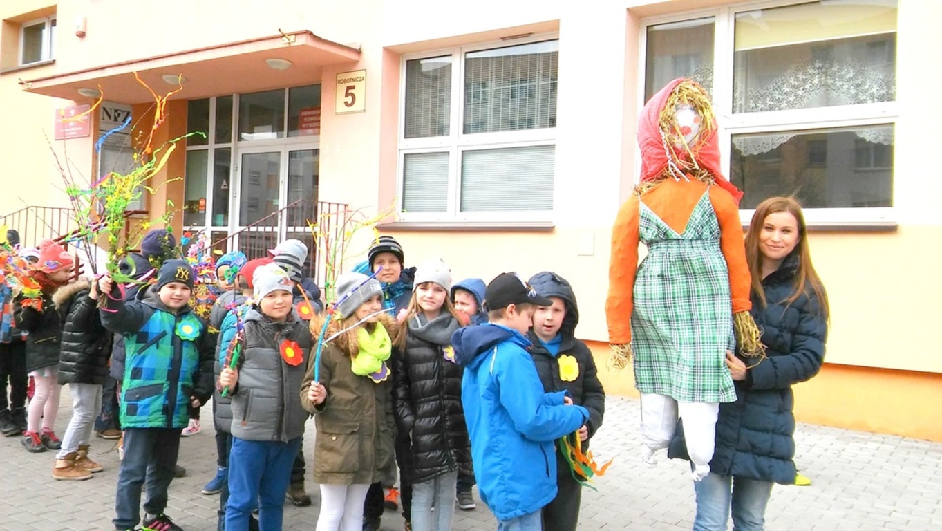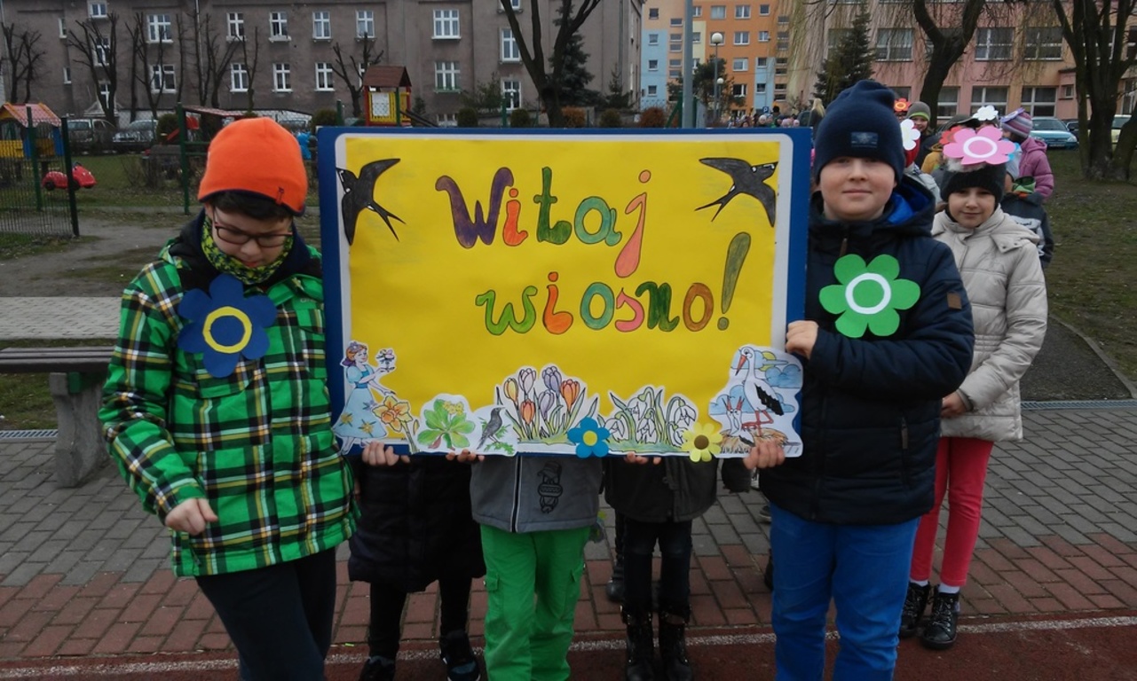21 marca 2016 r. uczniowie klas 1-3 utworzyli wiosenny korowód, który z marzanną wędrował wokół szkoły. Dzieci miały gaiki, kolorowe transparenty, wianki, opaski, wiosenne emblematy. Radośnie witały wiosnę.