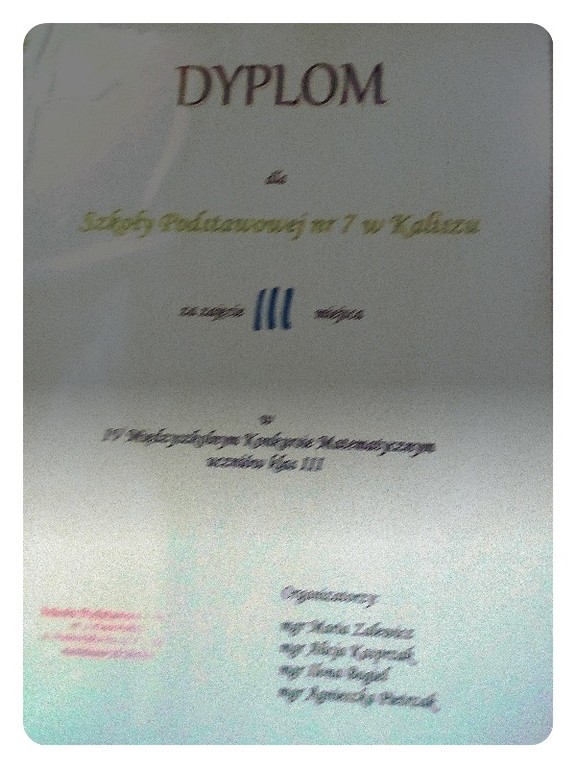 III miejsce w Międzyszkolnym Konkursie Matematycznym uczniów klas trzecich