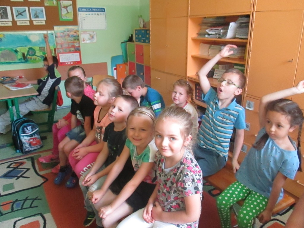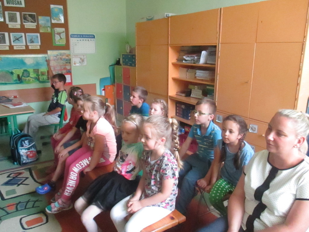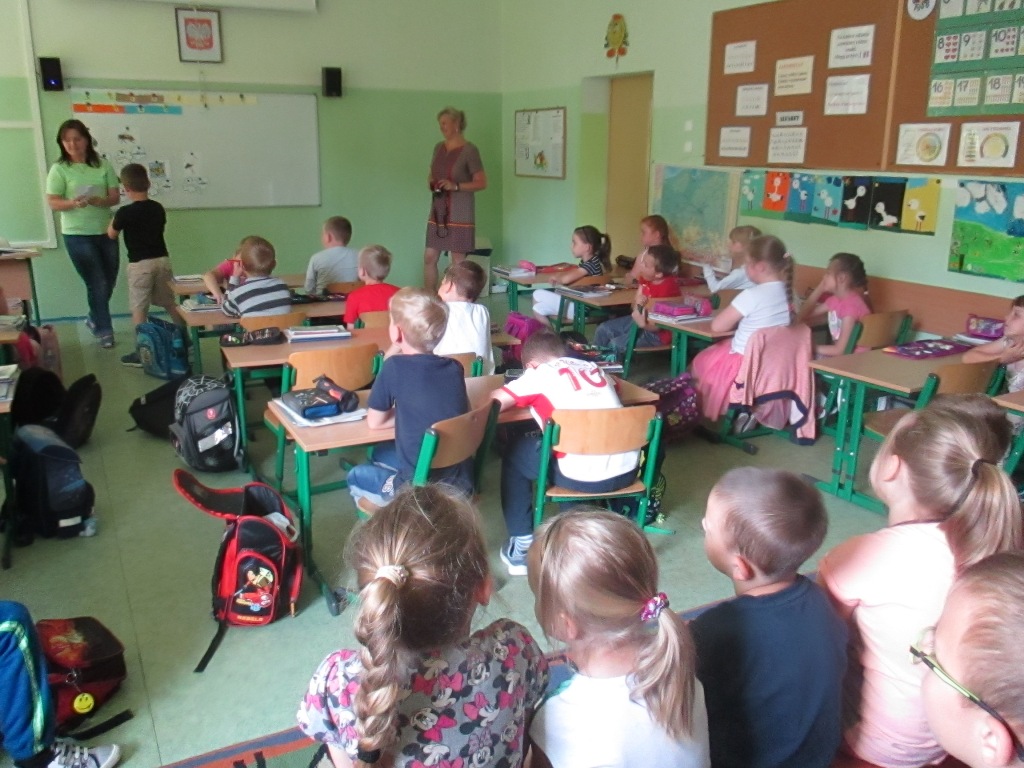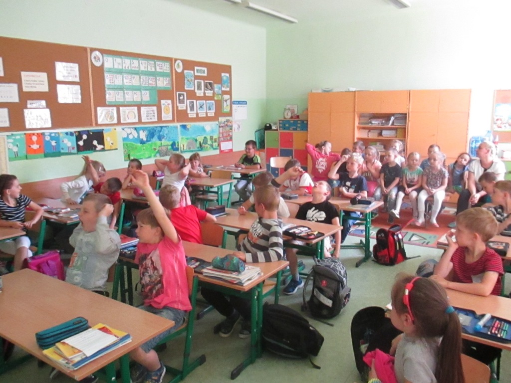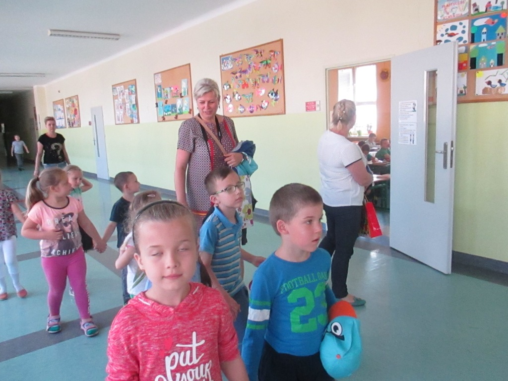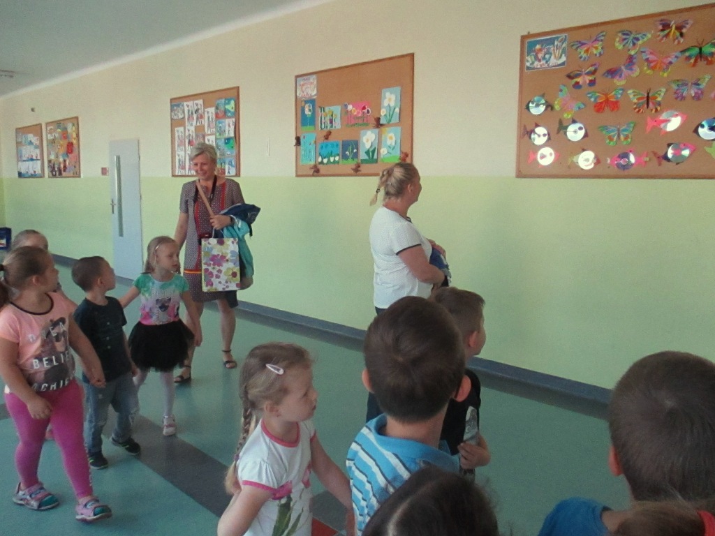 10 czerwca 2016 r. klasa 1d gościła przedszkolaków z Niepublicznego Przedszkola „Pluszowy Miś” w Kaliszu. Dzieci miały okazję poznać środowisko szkolne i poczuć się, jak uczniowie uczestnicząc w zajęciach szkolnych. Pierwszoklasiści w roli gospodarzy z dumą prezentowali swoje umiejętności podczas zajęć z edukacji przyrodniczej. Na zakończenie spotkania dzieci żegnając swoich gości obdarowały ich drobnymi upominkami. Przedszkolaki również odwdzięczyły się dając uczniom zakładki do książek. Dla uczniów spotkanie z przedszkolakami było miłym przeżyciem. Mamy nadzieję, że dla przedszkolaków również.