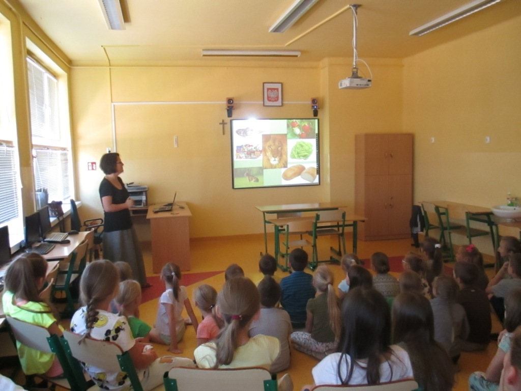 W ramach udziału szkoły w programie „Owoce i warzywa w szkole” rodzice uczniów klasy 2a wspólnie z wychowawczynią Anną Malinowską-Leki zorganizowali 7 czerwca 2016 r. spotkanie z panią Agnieszką Sobczak – dietetykiem. Podczas prelekcji połączonej z częścią warsztatową uczniowie zapoznali się z podstawowymi zasadami żywienia, poznali produkty, które dostarczają naszemu organizmowi węglowodanów, tłuszczy, białka oraz witamin. Poznali proporcje przygotowywania zdrowych posiłków i utrwalili zasady zawarte w piramidzie zdrowego żywienia. Dowiedzieli się, jak ważne jest systematyczne spożywanie zdrowych posiłków. W części warsztatowej zajęć uczniowie wskazywali wybrane produkty, określając ich przydatność lub negatywny wpływ na zdrowie. Wspólnie z panią dietetyk opracowali model zbilansowanego uczniowskiego śniadania, obiadu i kolacji. Pamiętali, by w każdym z pięciu posiłków każdego dnia, umieścić choć jeden owoc lub warzywo. Składamy serdeczne podziękowania pani Agnieszki Sobczak, że w tak atrakcyjny i zrozumiały dla dzieci przeprowadziła te zajęcia. Dziękujemy również rodzicom za zorganizowanie spotkania.
