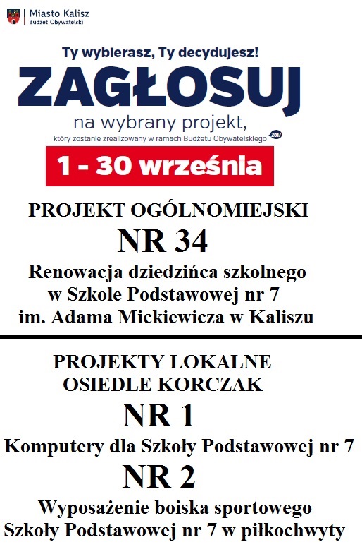 Zagłosuj na wybrany projekt w ramach Budżetu Obywatelskiego Miasta Kalisza na 2017 rok