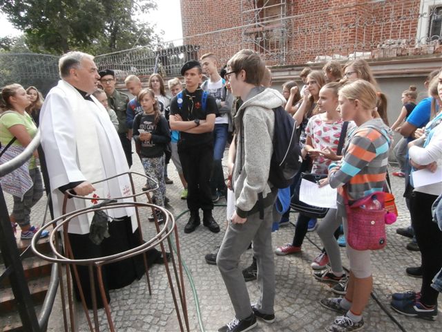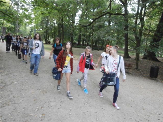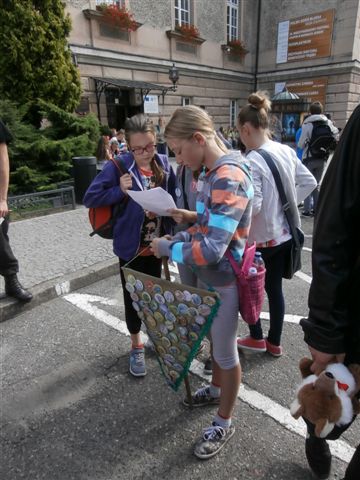 W dniu 17 września 2016r. nasze szkolne koło turystyczne wyruszyło na jedną z przygotowanych tras, aby poznawać zabytki i historię swojego miasta w niekonwencjonalny sposób. Przewodnikiem na trasie była Pani Bożena Kryst, która przybliżyła uczniom dzieje wielu miejsc. Najpierw rajdowcy odwiedzili cmentarz grecko-prawosławny przy ul. Górnośląskiej, następnie poznali historię Rogatki i hotelu Calisia. Wędrując dalej poznali dzieje kaliskiego szkolnictwa wyższego przy budynkach PWSZ, WPA UAM i terenach dawnej gminy żydowskiej. Wędrując ulicą Legionów poznali historię jej nazwy. W Alei Wolności uczniowie podziwiali klasycystyczne budynki NBP i Teatru im. W. Bogusławskiego. W cieniu drzew wędrownicy odkrywali piękne rzeżby i historię Parku Miejskiego. Przy budynku CKiS rajdowcy dowiedzieli się, jakie funkcje pełnił ten ciekawy architektonicznie budynek. Przy bazylice kolegiackiej wszyscy podziwiali nowo odkryty gotycki maswerk z XIV wieku oraz odrestaurowane mury prezbiterium. Kustosz kościoła, ks. Jacek Plota zaznajomił wszystkich z historią obrazu i kościoła oraz skarbami ukrytymi w Skarbcu.