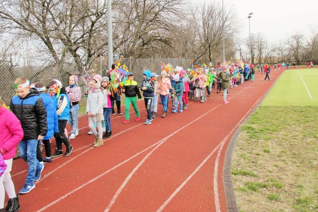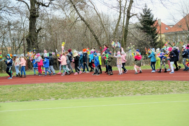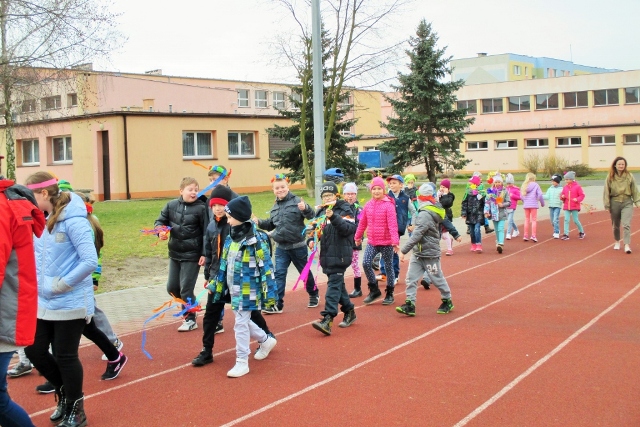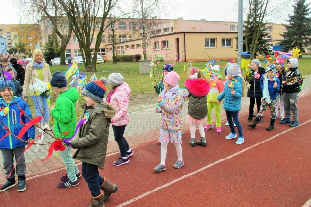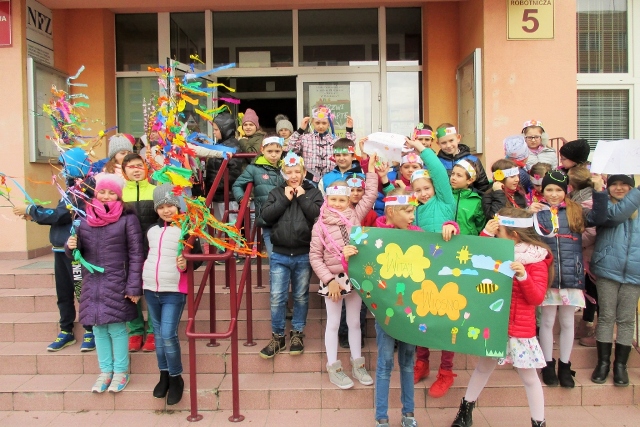 21 marca każdego roku świętujemy w naszej szkole nadejście wiosny. Jest to bardzo radosny dzień dla wszystkich uczniów. Mogą wówczas ubrać barwne stroje i wykonać kolorowe ozdoby. Uczniowie klas 1-3 i dzieci z oddziału przedszkolnego przywitały w tym roku wiosnę w barwnym i rozśpiewanym korowodzie. Dzieci z klas pierwszych i oddziału przedszkolnego wykonały gaiki, które przyozdobiły kwiatami, wstążkami i bibułą. Klasy drugie i trzecie oprócz plakatów o nadejściu wiosny, przygotowały marzannę, kolorowe ozdoby i transparenty. Wszyscy uczniowie podczas spaceru po boisku szkolnym żegnali zimę i witali wiosnę, wznosząc okrzyki: „Żegnaj zimo! Witaj wiosno!”. Zajęciom edukacyjnym w tym dniu towarzyszyły quizy, rebusy, konkursy klasowe o tematyce wiosennej, wiosenne pokazy mody i konkursy taneczne. W każdej sali lekcyjnej rozbrzmiewały piosenki świadczące o tym, że na dobre rozstaliśmy się z zimą.