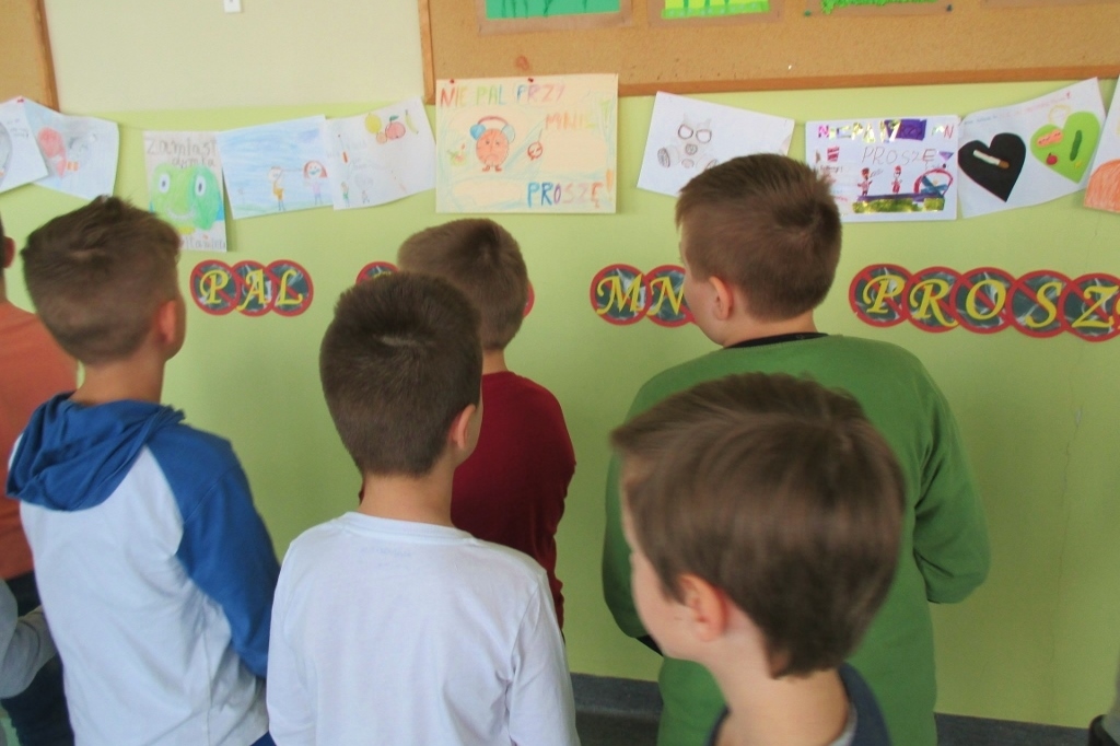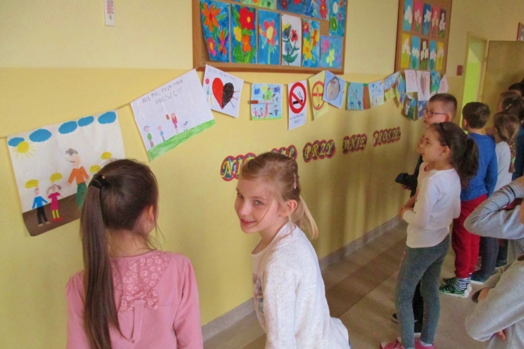 W klasach drugich odbył się Szkolny Konkurs Plastyczny „Nie pal przy mnie, proszę” zorganizowany w ramach realizacji programu edukacji antytytoniowej. Głównym celem programu było uświadomienie, że palenie tytoniu jest szkodliwe dla zdrowia oraz wykształcenie u dzieci umiejętności radzenia sobie w sytuacjach, gdy inni ludzie przy nich palą. Na korytarzu szkolnym przygotowano wystawę prac laureatów i uczestników konkursu. Wystawę obejrzeli uczniowie, rodzice i pracownicy szkoły.
