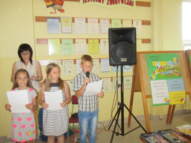 21 czerwca 2017 r. odbył się apel podsumowujący pracę Samorządu Uczniowskiego. Uczniowie klasy 3a i 2e pod kierunkiem pani Grażyny Wielgosz i pani Anny Malinowskiej- Leki, przedstawili ważne wydarzenia, które miały miejsce w ciągu całego roku szkolnego. Następnie wręczono dyplomy i nagrody laureatom konkursów szkolnych. Uczniowie klasy 3a w imieniu Samorządu Uczniowskiego wręczyli podziękowanie panu Radosławowi Nowaczykowi za organizację turniejów sportowych. Część artystyczną zakończyły dobre rady na wakacje w ramach realizacji projektu edukacyjnego „Bezpieczne wakacje”. Marysia Bartczak z klasy 3d, laureatka Międzyszkolnego Konkursu Piosenki Ludowej, zaśpiewała piosenkę „Zachodźże słoneczko”. Na koniec głos zabrała wicedyrektor Jadwiga Wojtyś, która udzieliła pochwały zuchom za godne reprezentowanie szkoły w środowisku lokalnym i odniesione sukcesy. Złożyła gratulacje laureatom konkursów szkolnych i międzyszkolnych.