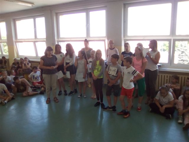 W dniu 22 czerwca 2017r. odbył się apel Samorządu Uczniowskiego dla klas 4-6. Apel prowadzili przedstawiciele SU przygotowani przez Panie Sylwię Bodzioch i Beatę Wawrzyniak. Pani wicedyrektor Małgorzata Waszczyńska wyróżniła wszystkich uczniów, którzy odnieśli sukcesy w różnych dziedzinach i konkursach w roku szkolnym 2016/2017. Przypomniano uczniów, którzy zostali laureatami konkursów wojewódzkich oraz Międzynarodowego Konkursu "Kangur Matematyczny". Wręczono uroczyście dyplomy uczniom nagrodzonym w Szkolnym Konkursie "Sudoku" oraz Szkolnym konkursie matematycznym dla klas czwartych "Matleci". Wręczono dyplomy uczniom, którzy uczestniczyli w rajdach. Przypomniano osiągnięcia sportowe uczniów naszej szkoły. Na zakończenie apelu przypomniano o bezpiecznych zachowaniach w czasie wakacyjnych zabaw i wyjazdów.