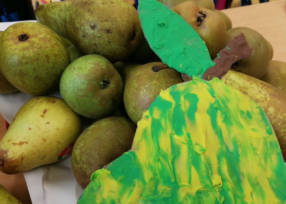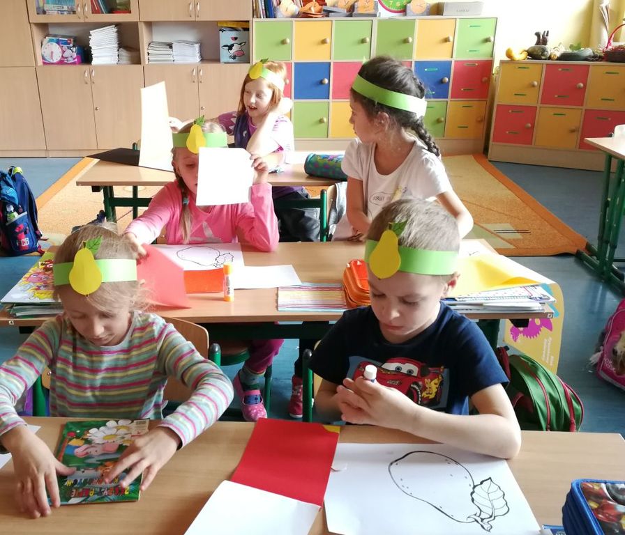 Gruszka królowała też na matematyce. Dzieci z oddziałów przedszkolnych segregowały, porównywały i klasyfikowały zbiory owoców, dzieci starsze ważyły owoce. Gruszka była też głównym tematem na zajęciach w szkolnej świetlicy.