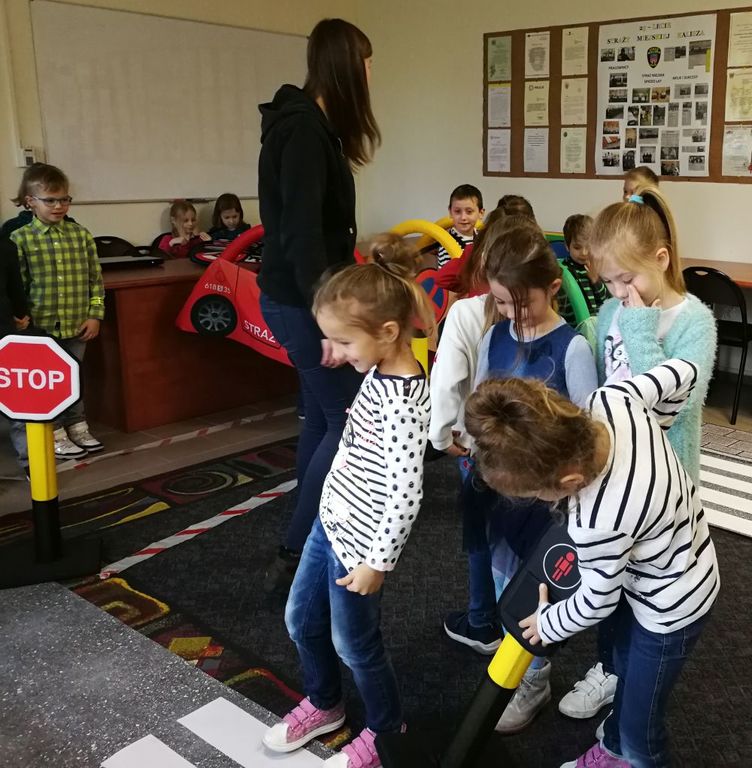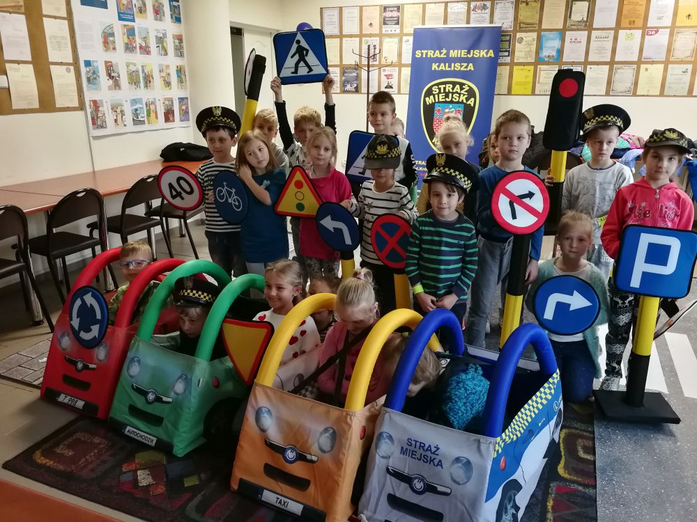 Podstawowe zasady ruchu drogowego przypomniały sobie we wtorek dzieci z oddziałów przedszkolnych i uczniowie klas pierwszych Naszej Szkoły. W tym celu najmłodsi grupowo odwiedzili kaliską Straż Miejską. Strażniczki poprowadziły dla nich specjalne zajęcia z wykorzystaniem autochodzików. Lekcja odbyła się w ramach Programu edukacji komunikacyjnej autochodzik – gotowi do drogi.