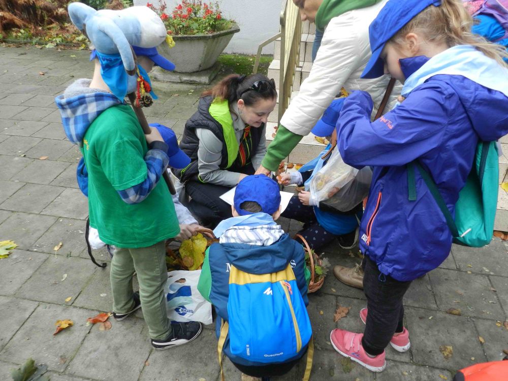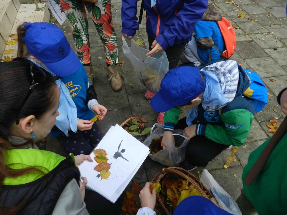 Po wyruszeniu na trasę zmagaliśmy się z jesiennymi zadaniami. Dzieci wykazały się dużą kreatywnością, integracją i sprawnością.
