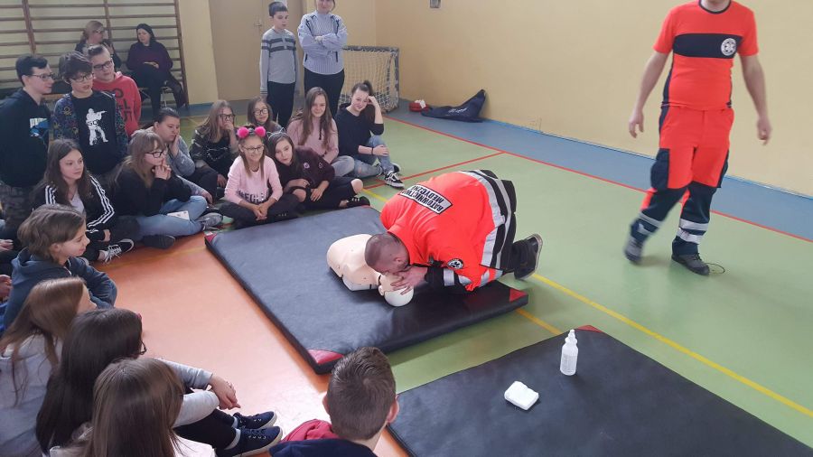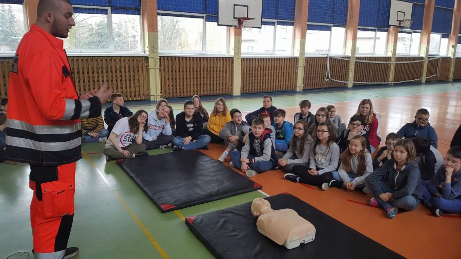Ocena stanu poszkodowanego (przytomność, oddech, krążenie), zatamowanie ewentualnego krwotoku i zabezpieczenie przed infekcją w przypadku złamań otwartych, unieruchomienie złamanej kończyny, pozycja bezpieczna poszkodowanego – m.in. o tych elementach pierwszej pomocy we wtorek rozmawiali kaliscy ratownicy z uczniami klas IV-VII Naszej Szkoły.