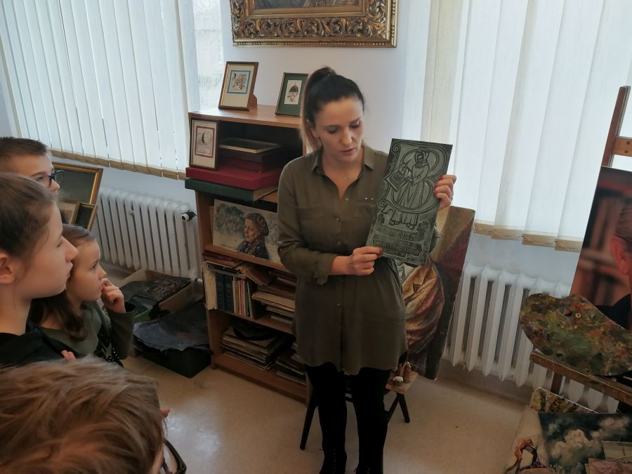 Uczniowie byli w miejscu magicznym – Izbie Pamięci Władysława Kościelniaka. Została ona otwarta w pierwszą rocznicę śmierci kaliskiego artysty – 8 listopada 2016 roku. Mieszczące się przy ul. Górnośląskiej 10 od lat 40. XX w. atelier, zgodnie z wolą artysty, po jego śmierci trafiło pod opiekę biblioteki. Twórca przez wiele lat był związany z Książnicą Pedagogiczną. Uczniowie z zachwytem obejrzeli miejsce pracy mistrza.