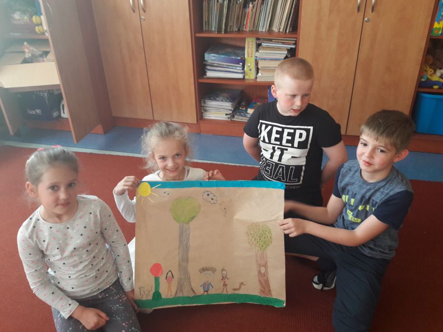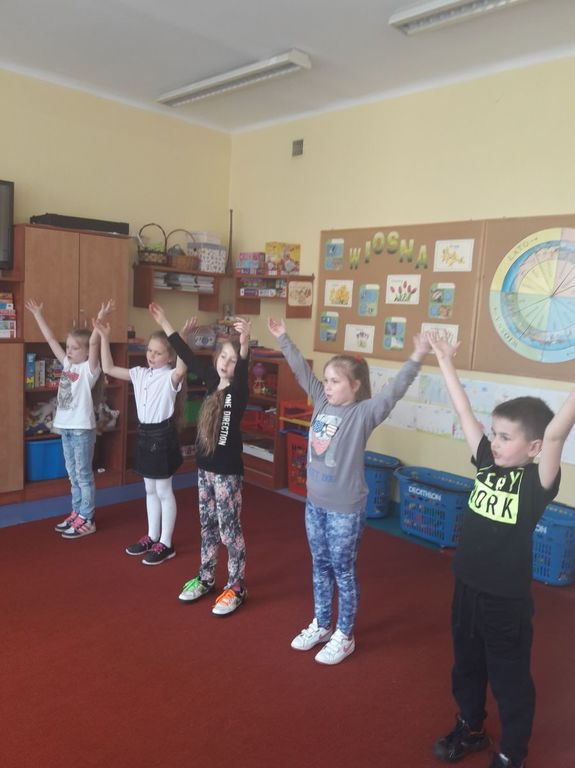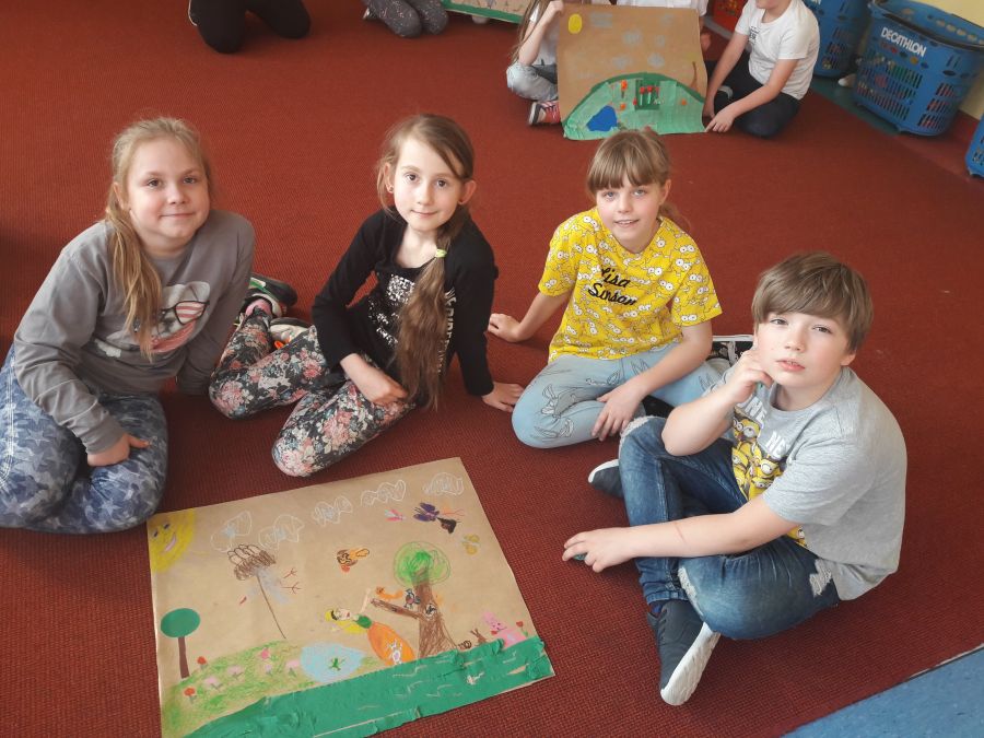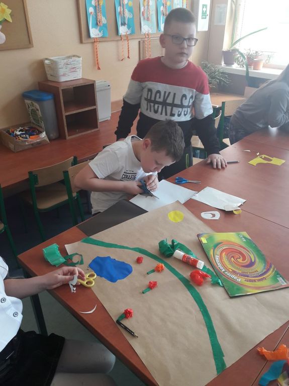 Uczniowie uczestniczyli w zajęciach, podczas których wypowiadali się na temat wiosny. W grupach wykonali wiosenne prace plastyczne.