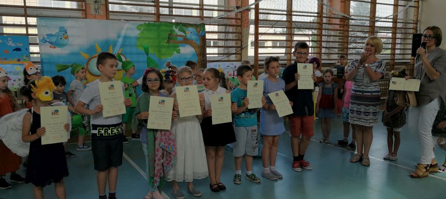 Podczas apelu uczniowie z klasy 1b zaprezentowali inscenizację pt. „Jesteśmy przyjaciółmi Ziemi” , w której propagowali proekologiczne zachowania. Dzieci przypomniały, że Ziemia jest naszym wspólnym dobrem i trzeba o nią szczególnie dbać. W tym dniu podsumowano również wyniki przeprowadzonych konkursów. Laureatom dyrektor Jadwiga Wojtyś wręczyła dyplomy i nagrody.