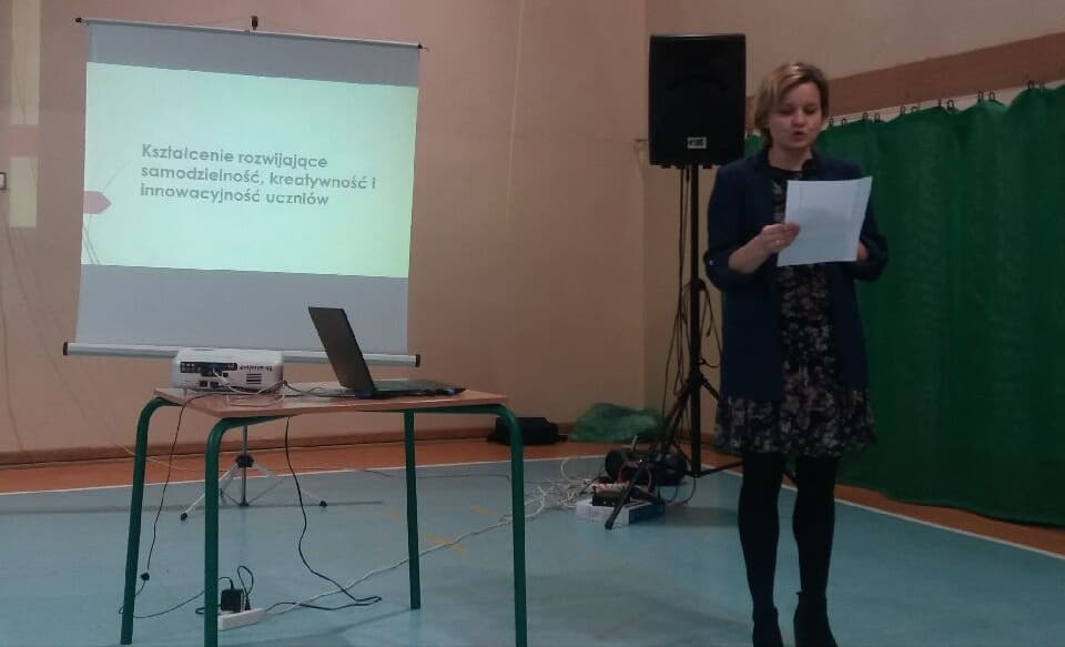 Rodzice uczniów z klas I-III i oddziału przedszkolnego także mieli okazję wziąć udział w prelekcji psycholog Joanny Lizut pod hasłem: „Kształcenie rozwijające samodzielność, kreatywność i innowacyjność uczniów”.