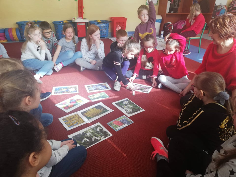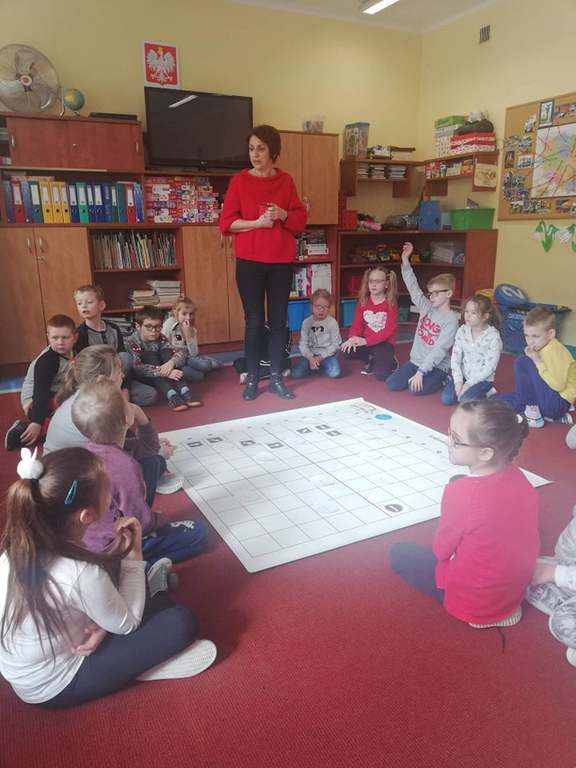 26 marca odbyły się kolejne zajęcia z kodowania, które obejmowały tematykę wiosenną. Na początku zajęć uczniowie wskazywali cechy charakterystyczne wiosny. Musieli je wyodrębnić spośród innych, które umieszczone były na macie do kodowania. Były do tego odpowiednio przygotowane na kartkach strzałki.