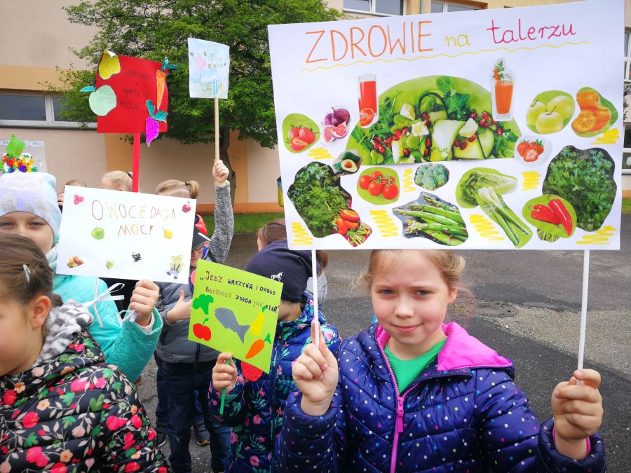 W czwartek 16 maja 2019 roku uczniowie klas I-III uczestniczyli w kolorowym korowodzie w ramach „Programu dla szkół”. Dzięki uczestnictwu w tym przedsięwzięciu ze środków unijnych oraz z budżetu krajowego regularnie do naszej docierają porcje owoców i warzyw. Celem programu jest propagowanie zdrowej diety, bogatej w owoce i warzywa.