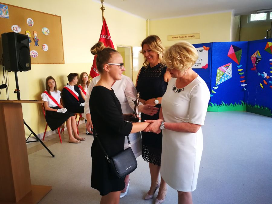 Podczas zakończenia klas ósmych statuetkę Dyrektora Szkoły odebrała Ada Wojterska za wysokie wyniki w nauce i wzorową postawę, a także reprezentowanie naszej szkoły podczas olimpiad i konkursów ogólnopolskich.