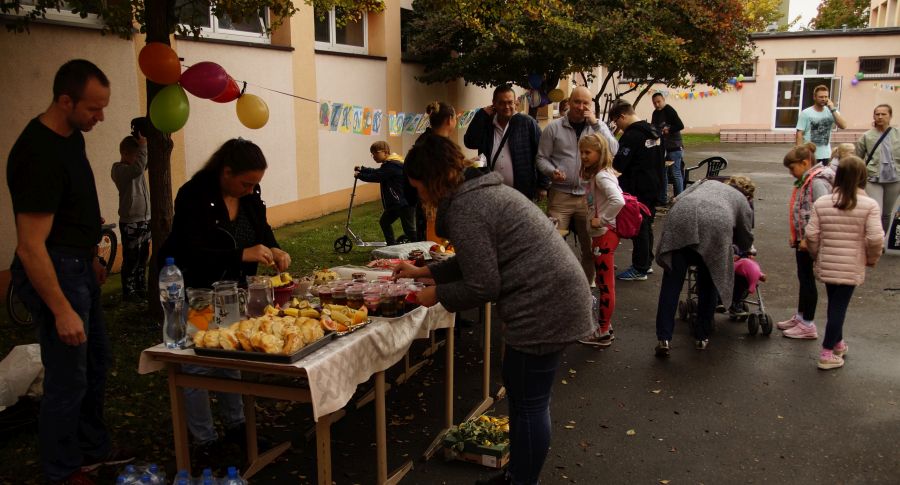 Kulinarne niespodzianki przygotowali rodzice, nauczyciele oraz zaprzyjaźnione firmy. Furorę zrobił bigos z jabłek i grill – w rolę kucharzy wcielili się nauczyciele wychowania fizycznego.
