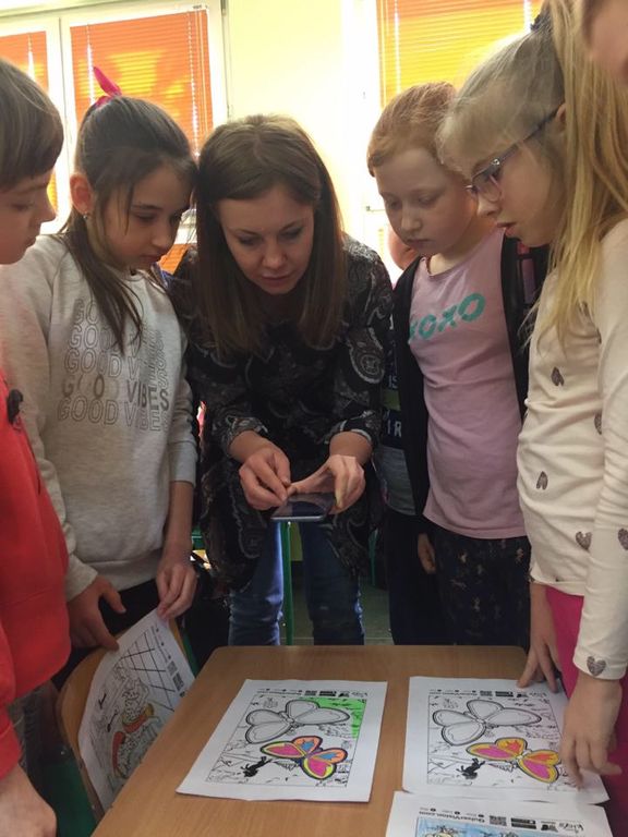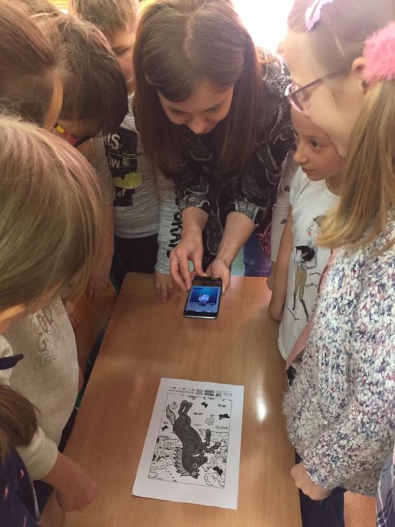 Aplikacja jest bezpłatna, szybka w instalacji, do pobrania w sklepie play. W aplikacji znajduje się bezpłatna i płatna baza kolorowanek do wydruku ze specjalnymi znakami. Po wydrukowaniu obrazka i dokładnym pokolorowaniu, telefonem lub tabletem skanujemy rysunek, w odpowiedniej odległości i w całości – łapiemy ostrość. Gdy rysunek zmieni barwę na niebieski, za moment jego elementy ożyją. Np. pokolorowany wulkan wybucha, można obejrzeć jego przekrój w środku, magmę, lawę i pył wulkaniczny. Towarzyszy temu ciekawy dźwięk, można także rozwiązać ciekawy quiz dotyczący budowy wulkanu. To świetny przerywnik na lekcji geografii, przyrody lub innych Zajęciach. Młodsze klasy szaleją jak ich psy szczekają, konie skaczą, a ryby pływają – oczywiście na kartce papieru.
