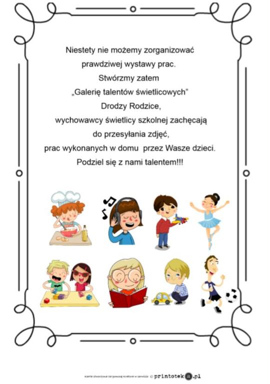 Kochane Dzieci jesteśmy bardzo szczęśliwe, że podczas zajęć w domu nadal aktywnie pracujecie. Pomagacie swoim Rodzicom w wykonywaniu obowiązków domowych, znajdujecie czas na rozwijanie swoich talentów.