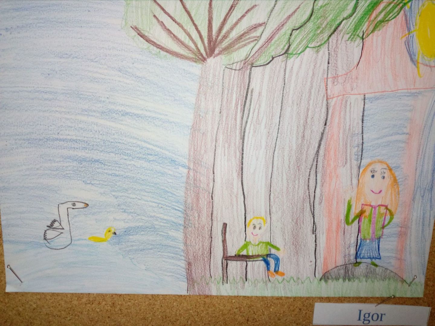 Wybór najładniejszych prac nastąpił przez oddanie głosu (położenie klocka na wybranym rysunku) przez każde dziecko. W wyborze najładniejszych prac brała udział też wychowawczyni Elżbieta Małyjasiak.