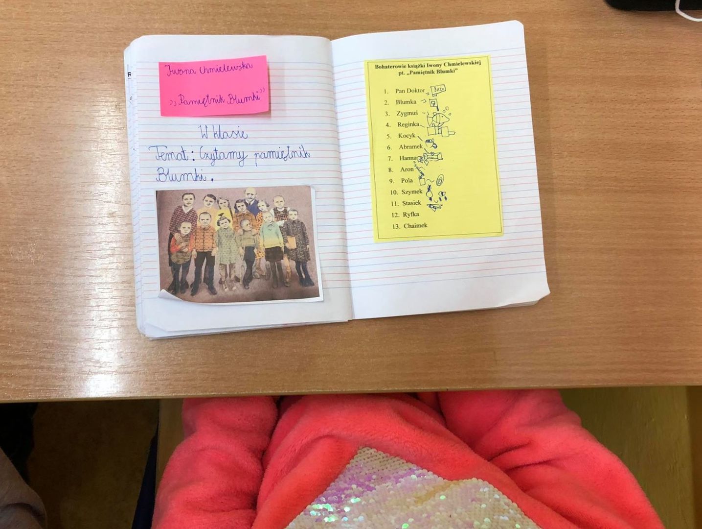 Przekazanie młodym pokoleniom wiedzy o tych przykrych wydarzeniach nie jest łatwe. Jednak podjęła się tego zadania Anna Malinowska-Leki wraz z uczniami klasy 2c. Zajęcia lekcyjne, w których uczestniczyli drugoklasiści oparte były na książce Iwony Chmielewskiej pt. „Pamiętnik Blumki”. Sami uczniowie zauważyli nawiązanie do postaci, która kojarzyć się powinna z naszym rodzimym miastem Kaliszem. Mowa o Januszu Korczaku, który w tytułowym pamiętniku małej Blumki jest Panem Doktorem.