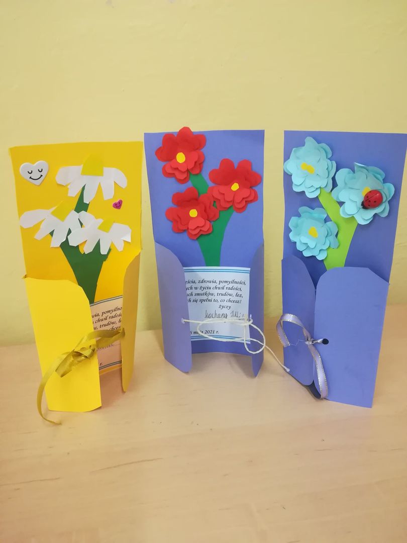 Uczniowie klas I-III w ramach zajęć edukacji wczesnoszkolnej z wielkim zaangażowaniem wykonali pomysłowe i piękne laurki dla swoich Mam. Do kolorowych kartek dołączyli płynące z głębi serc życzenia.