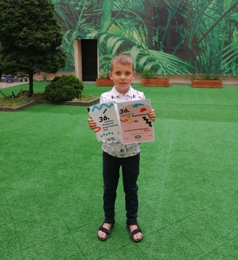 Jest nam niezmiernie miło poinformować, że Szymon Piotrowski z oddziału przedszkolnego zdobył wyróżnienie w 36 Konkursie Plastycznym "Świat Dziecka ", organizowanym przez Galerię Sztuki im. Jana Tarasina w Kaliszu.