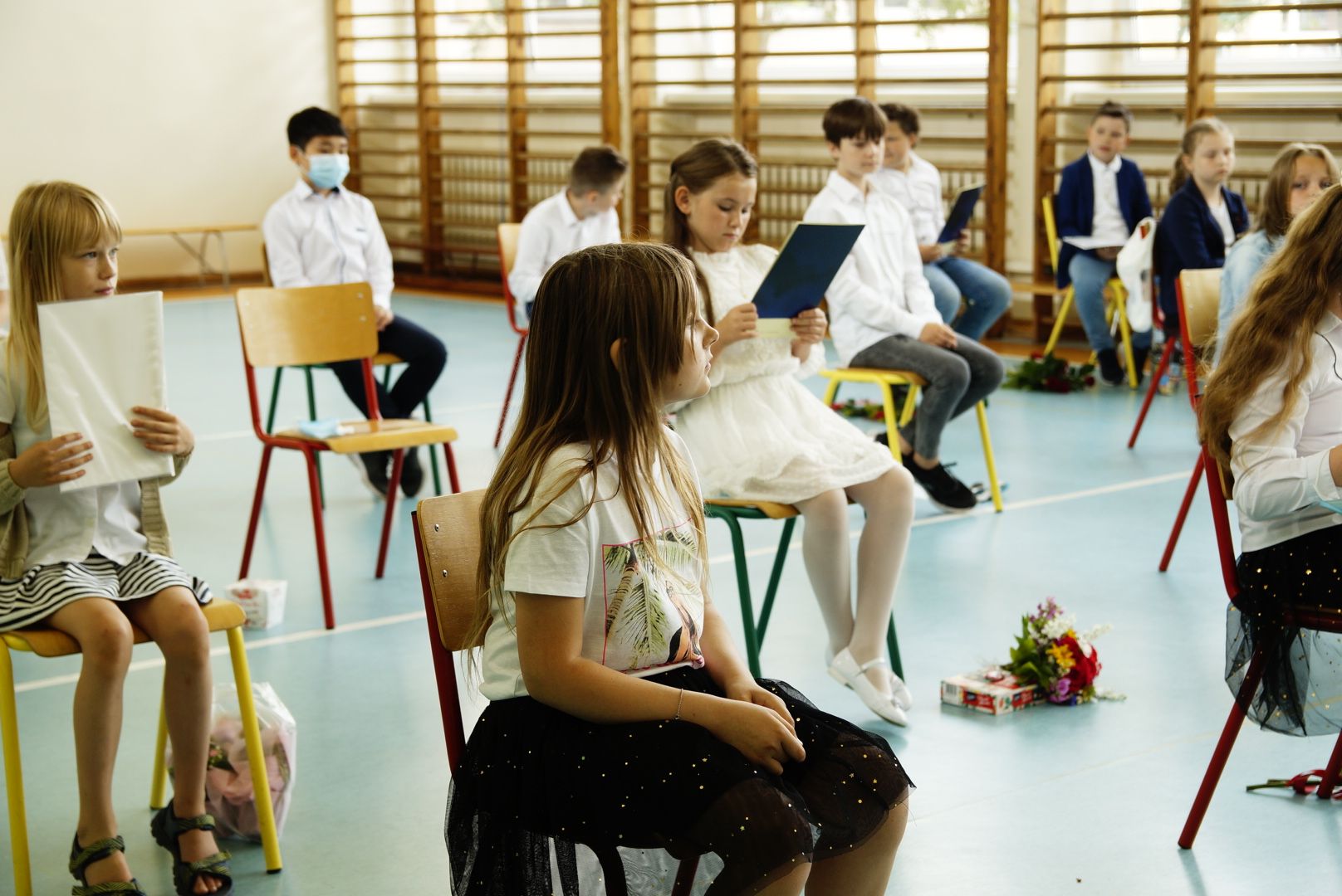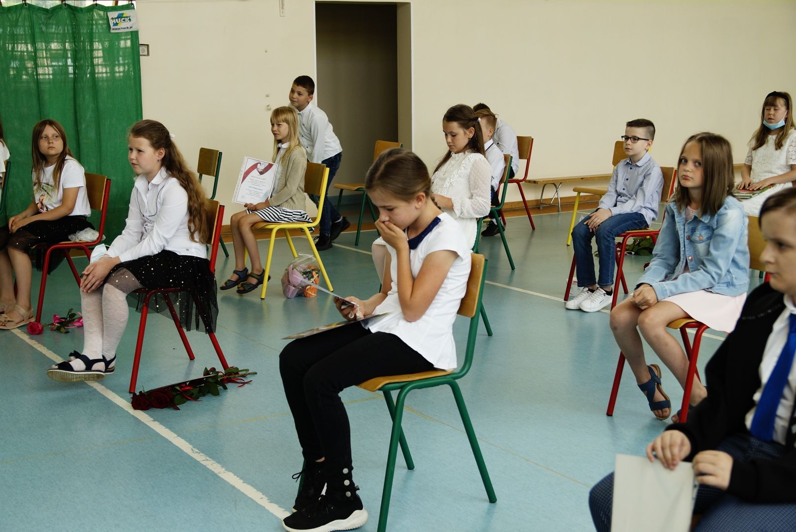 W klasach I-III i oddziale przedszkolnym zakończenie Roku Szkolnego miało odmienny niż zwykle charakter. Uczniowie klas I i II spotkali się ze swoimi wychowawcami w salach lekcyjnych. Uczniowie klas III, kończący I etap edukacji spotkali się z wychowawcą i wicedyrektorem w małej sali gimnastycznej. Wysłuchali przemówienia podsumowującego pierwsze trzy lata edukacji w szkole. Trzecioklasiści, którzy uzyskali wysoki poziom wiadomości i umiejętności otrzymali listy gratulacyjne, a wszyscy pamiątkowe dyplomy ukończenia oraz książki ufundowane przez rodziców.