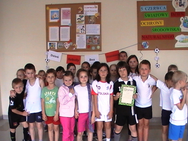 Dzień Szkoły bez Przemocy jest wielkim świętem wszystkich tych, którym zależy na bezpiecznej i przyjaznej szkole tworzonej przez społeczność zintegrowaną z lokalnym środowiskiem, angażującą się w działania wolontaryjne. „Dzień Szkoły bez Przemocy’’ przebiegał w naszej szkole pod hasłem „Kibicuję Fair Play”. W kl. I-III i oddziałach przedszkolnych odbyły się międzyklasowe zabawy sportowe. Podczas wspólnej zabawy doskonalono umiejętność współzawodnictwa oraz rywalizacji ,,fair play’’. Wychowawcy klas przeprowadzili pogadanki na temat ,,Przeciwdziałania przemocy i agresji w szkole’. W ramach edukacji muzycznej uczniowie utrwalali hymn państwowy. Nauczyciele wdrażali uczniów do szacunku wobec symboli narodowych. Zwracali uwagę na śpiewanie z szacunkiem hymnu jako symbolu, który towarzyszy sportowcom przed rozpoczęciem rozgrywek sportowych. Uczniowie wykonali pracę plastyczną „Szkoła bez przemocy”. Na korytarzu szkolnym przygotowano wystawę prac uczniów. Dzieci otrzymały nagrody, dyplomy oraz odznaki „Kibicuję Fair Play”.