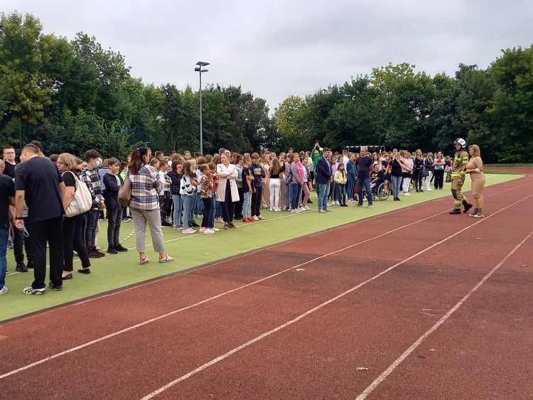 Pożar w kuchni – taką informację otrzymała w piątek – 17 września Straż Pożarna w Kaliszu ze Szkoły Podstawowej nr 7 im. Adama Mickiewicza. Na szczęście były to tylko ćwiczenia. Próbna ewakuacja to działanie obowiązkowe w nowym roku szkolnym. Pozwala sprawdzić organizację i warunki ewakuacji uczniów i nauczycieli z obiektu szkolnego. Szkołę w działaniach wsparła jednostka z Ochotniczej Straży Pożarnej „Dobrzec” w Kaliszu.