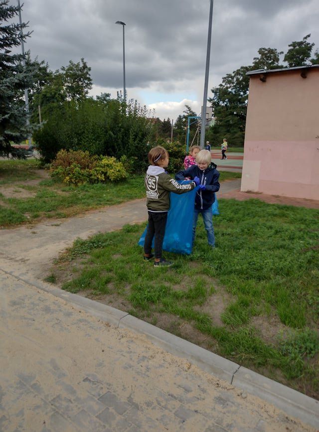 Akcję rozpoczęły zajęcia dotyczące ochrony środowiska, konieczności segregacji śmieci. Następnie pod okiem wychowawcy świetlicy - Sylwii Pytlińskiej, dzieci wyposażone w worki na śmieci, rękawiczki, bardzo dokładnie wysprzątały teren szkoły. Było oczywiście przy tym dużo radości i zabawy. Dzieci postanowiły, że będą segregować śmieci w swoich domach oraz regularnie sprzątać tereny zielone znajdujące się przy szkole.