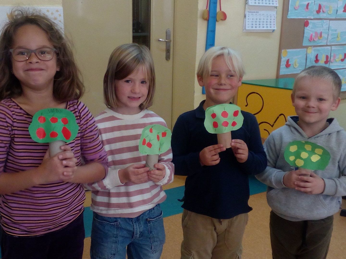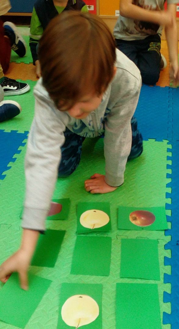 Podczas wspólnych zajęć dzieci określały walory wizualne i smakowe wybranych gatunków jabłek, poznały ich nazwy oraz zrozumiały ważną rolę pszczół w powstawaniu owoców.