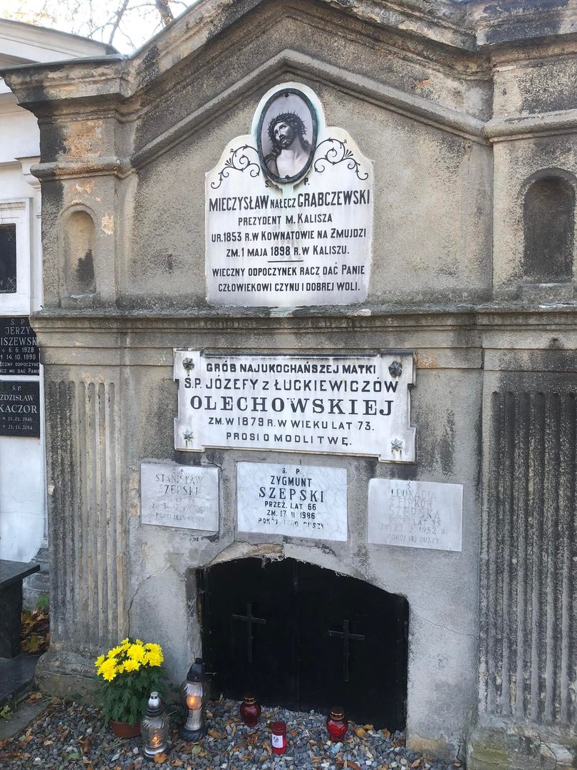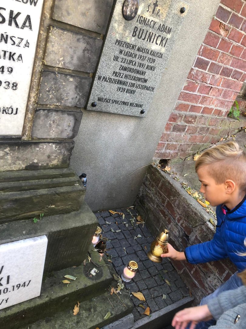 Punktem końcowym wycieczki było złożenie kwiatów i zapalenie zniczy na grobach zasłużonych dla Kalisza osobistości – Mieczysława Nałęcz Grąbczewskiego (dawnego Prezydenta Miasta Kalisza ), Legionistów Polskich, Ignacego Adama Bujniciego (Prezydenta Miasta Kalisza zamordowanego przez hitelrowców) oraz księży służacych Kaliszowi.