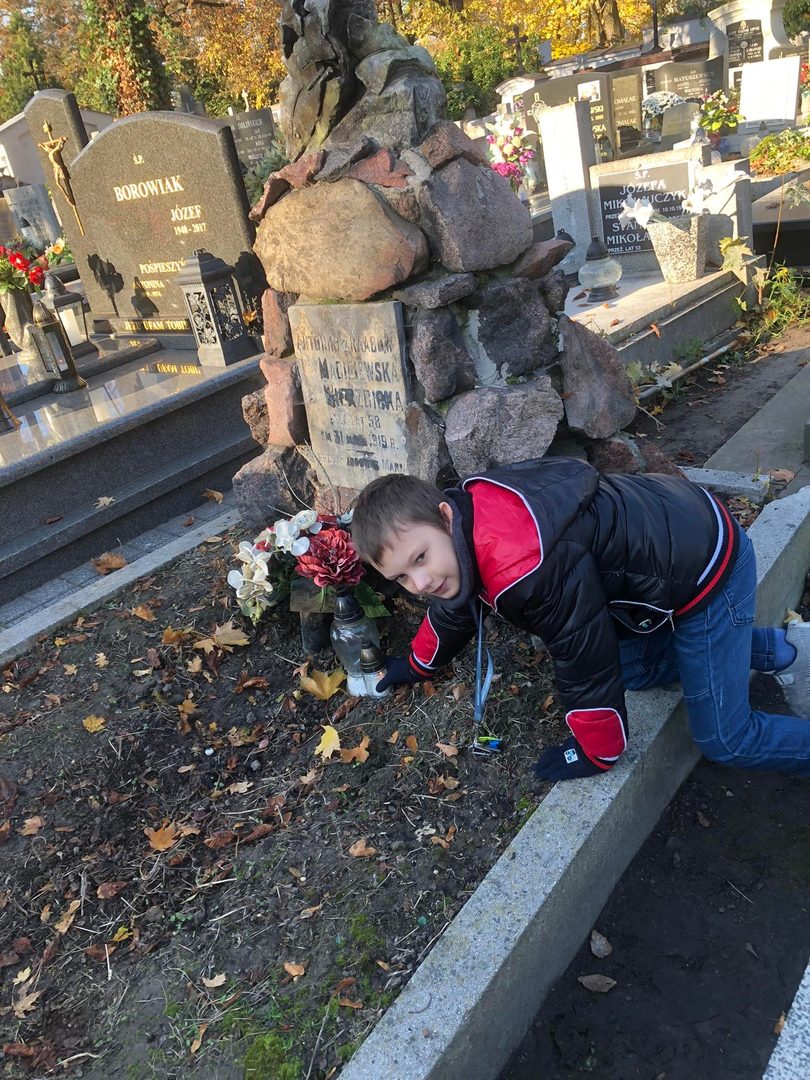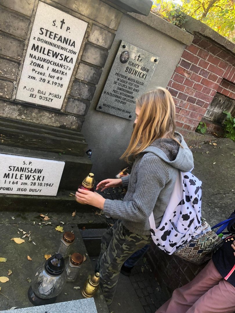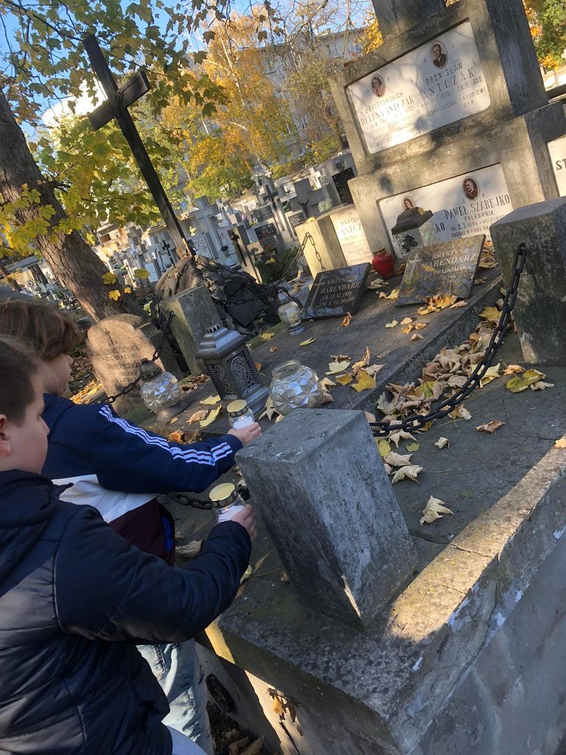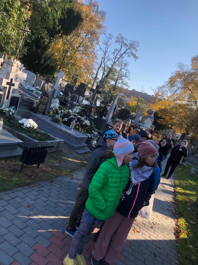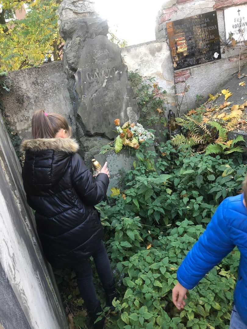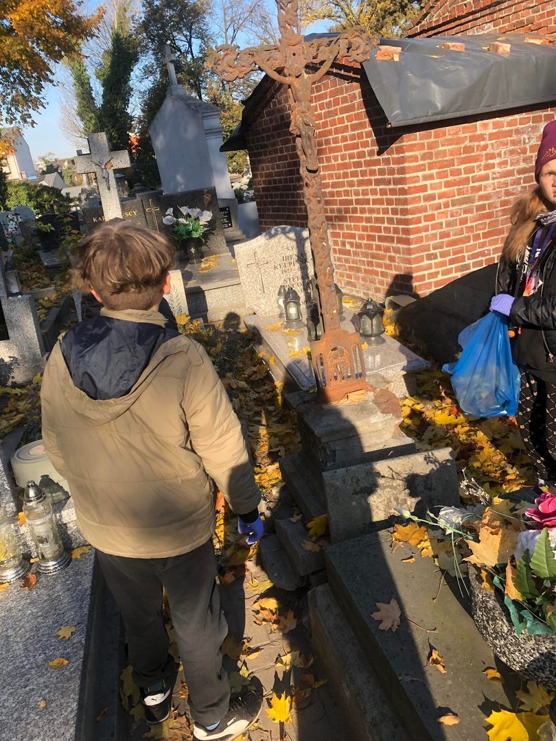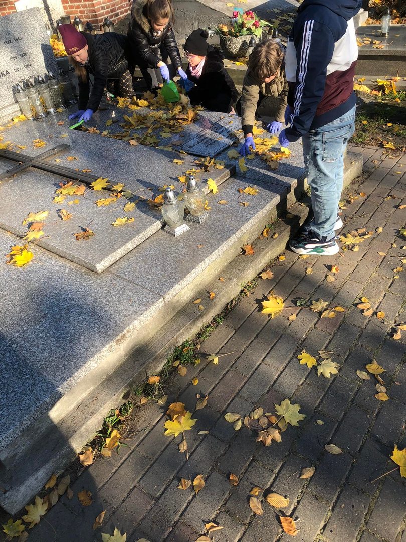 Na tym jednak wycieczka się nie zakończyła. Uczniowie wraz z opiekunami udali się na miejski cmentarz katolicki, gdzie zaopiekowali się zaniedbanymi grobami – uprzatnęli liście, odkurzyli tablice, zapalili znicze. Akcja spotkała się z niezwykłą aprobatą, czego wyrazem były miłe słowa, jakie uczniowie i ich opiekunowie usłyszeli od przypadkowych przechodniów.