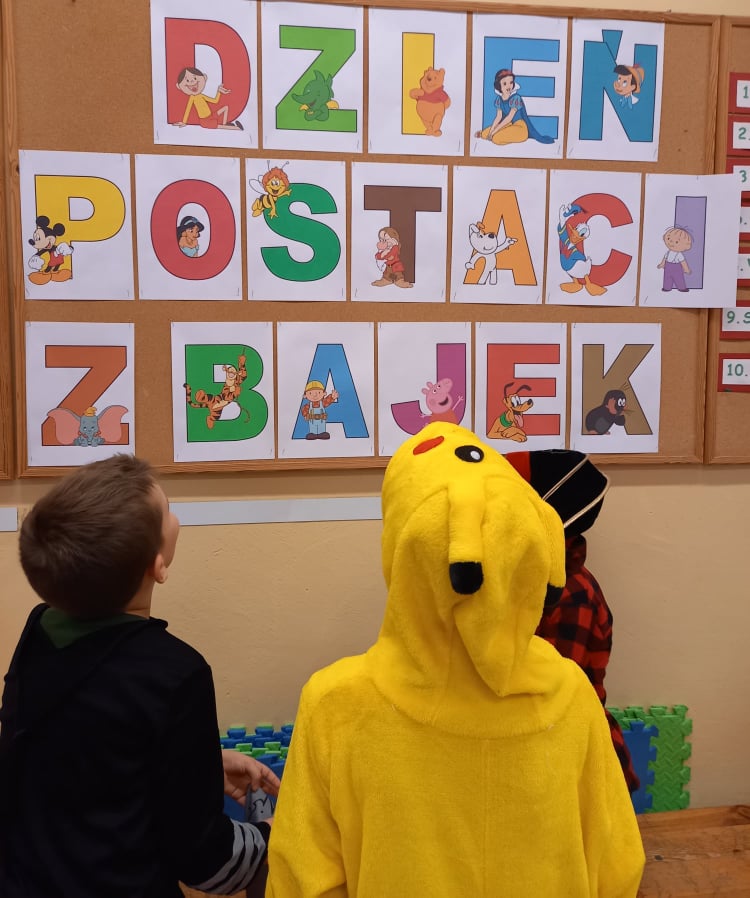 Podczas zajęć na uczniów klas 1-3 oraz dzieci z oddziału przedszkolnego czekało wiele bajkowych atrakcji np. rebusy i zgadywanki, kolorowanki, bajkowe labirynty i wspólne oglądanie fragmentów bajek i baśni. Uczniowie mieli również możliwość wypowiedzenia się na temat ulubionej opowieści. Świetlica szkolna także przygotowała tego dnia zajęcia o bajkowym charakterze.