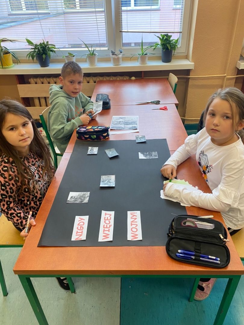 Podczas zajęć edukacyjnych uczniowie w klasach trzecich czytali opowiadanie Anny Onichimowskiej „Mały powstaniec”. Rozmawiali z nauczycielem o najmłodszych bohaterach Powstania Warszawskiego, o ich uczuciach i ogromnej odwadze. Dokonali analizy treści wiersza Stanisława Grabowskiego „Dziadek objaśnia las”.