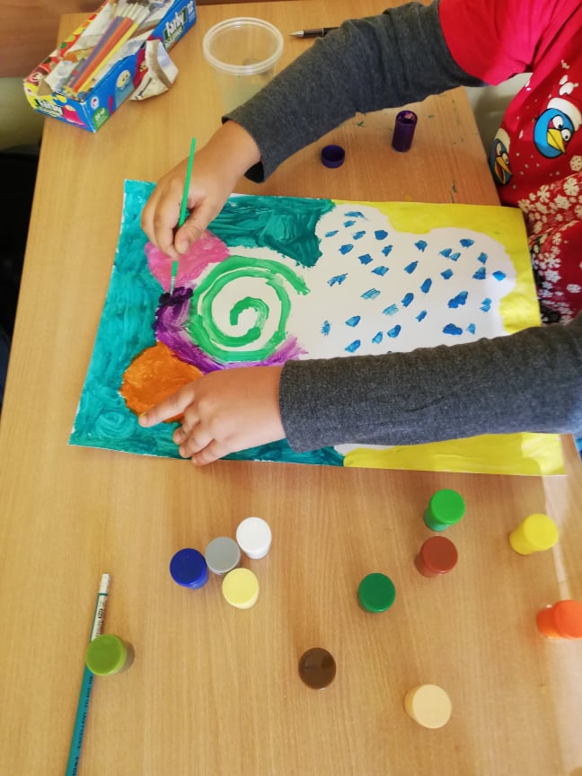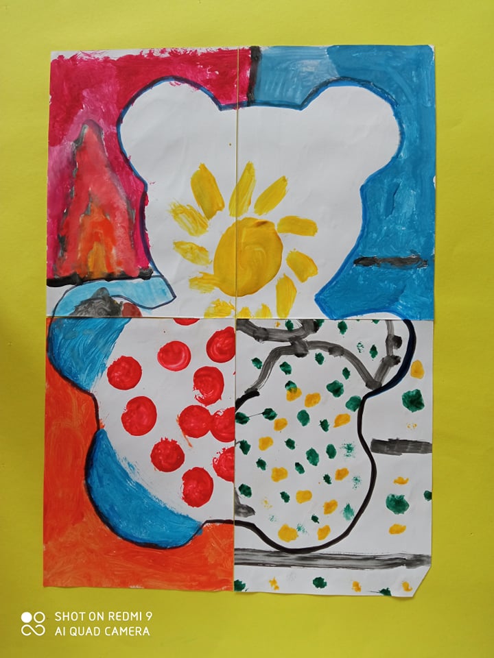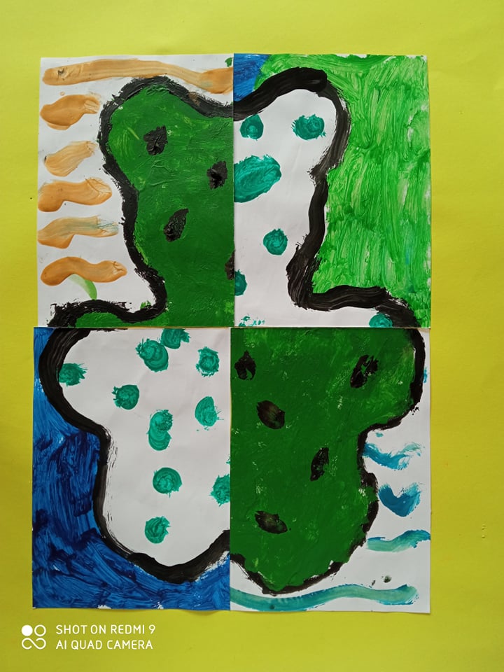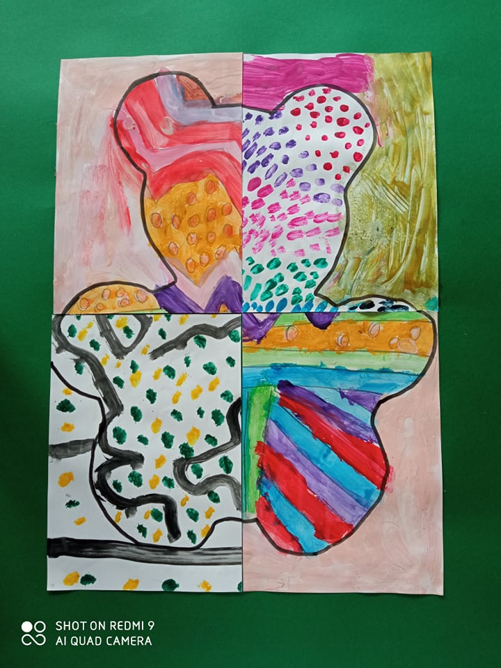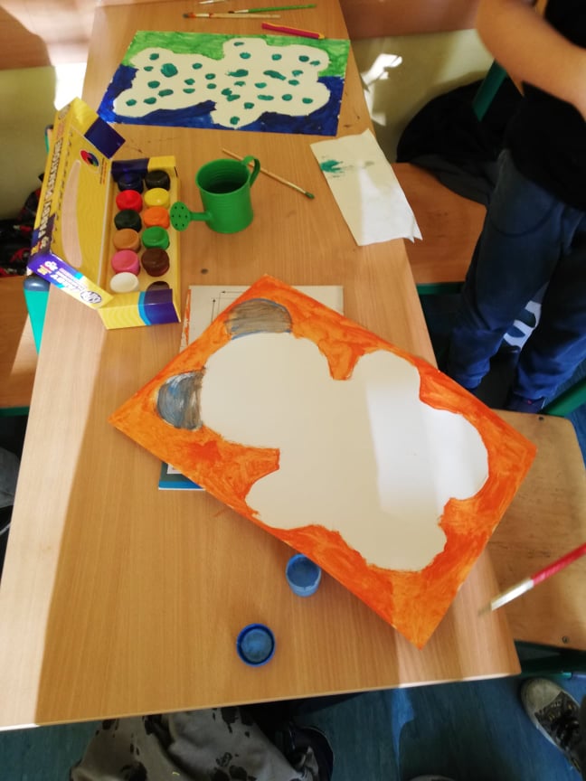 Klasa 2 c pod czujnym okiem bibliotekarki Iwony Skoniecznej – Wrubińskiej wykonała misiowe portrety, które później tworzyły kilka większych. Każdy mógł się wykazać plastyczną fantazją.