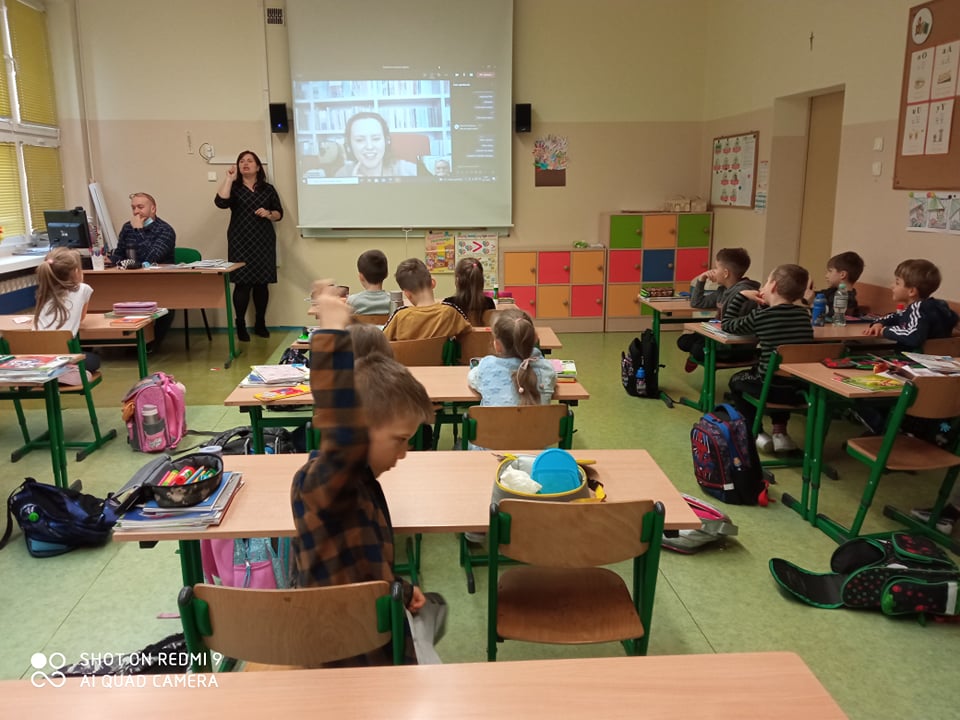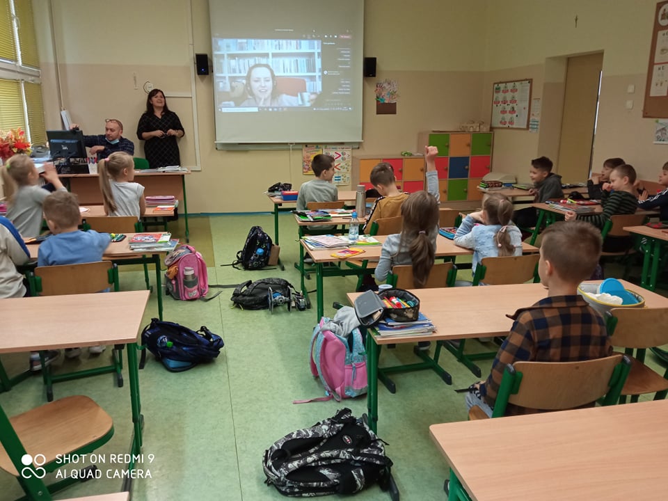 Klasa 1 a wzięła udział w lekcji online, którą przeprowadziła z uczniami Malwina Nowacka, z kaliskiej filii nr 9 Miejskiej Biblioteki Publicznej im. Adama Asnyka.