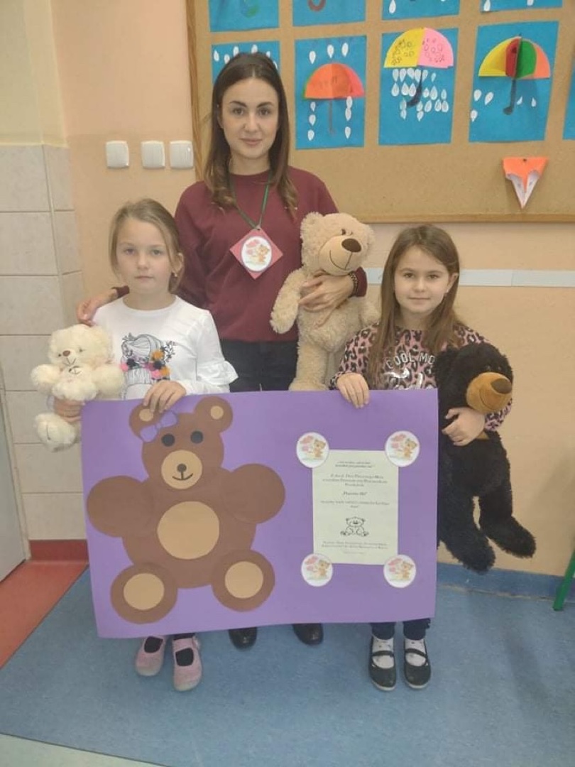 Cytując Anetę Jadowską: "Podobno niedźwiedzie to jedne z najbardziej niebezpiecznych zwierząt na świecie. To pewnie dlatego każde dziecko dostaje jednego do obrony." I wydaje się, że coś w tym musi być, bo każdy uczeń w tym dniu zdawał się być nie tylko bardziej radosny, ale i odważny oraz pewny siebie. Jeśli to wpływ pluszowego misia, to niech towarzyszy on naszym małym uczniom każdego dnia. Widać Ci mali przyjaciele dzieci, potrafią zdziałać cuda.