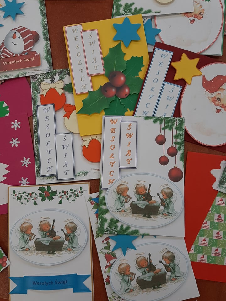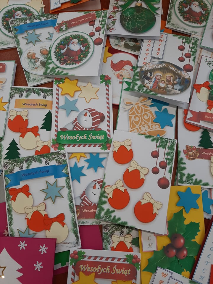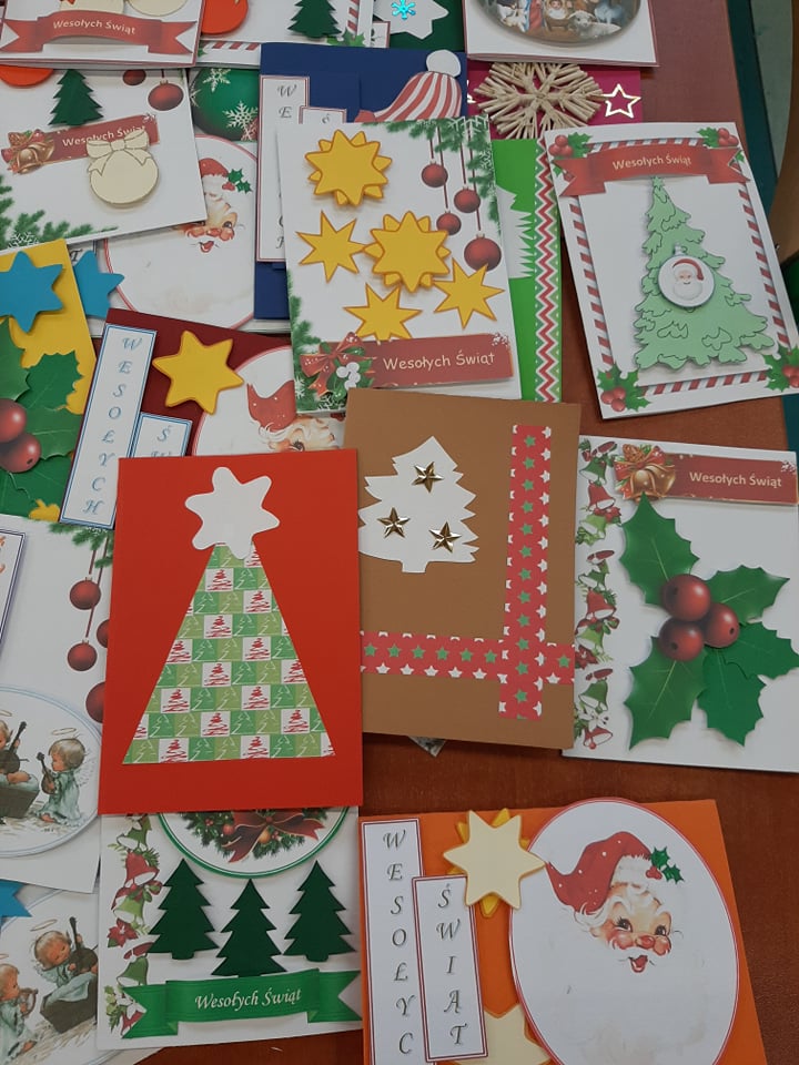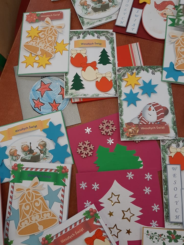 - przygotowanie przez uczniów uczęszczających do świetlicy szkolnej kartek świątecznych i przekazanie ich Seniorom z Domu Opieki Społecznej DPS Kalisz (koordynator: Sylwia Pytlińska).