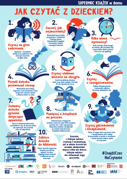 Akcję „Supermoc książek w domu. Jak czytać z dzieckiem?” razem podpisało blisko dwadzieścia różnych podmiotów: miasta, festiwale, fundacje, instytucje kultury. Działamy razem, bo sprawa jest naprawdę ważna i jednocześnie trudna; każdy z nas ma nieco inne doświadczenie, perspektywę, własne obszary i metody działań ale wszyscy mamy jeden cel. Wierzymy, że razem jesteśmy w stanie diagnozować potrzeby, niwelować przeszkody oraz wykorzystywać potencjał, by w rezultacie skuteczniej wpływać na dorosłych i inspirować dzieci