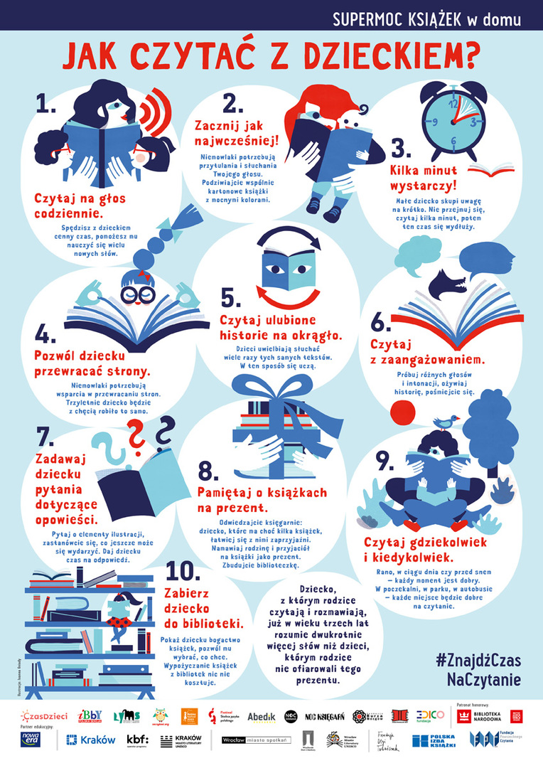 Z dziećmi należy czytać od pierwszego roku ich życia – to prawda powszechnie znana. Ale czy wiemy, jak się za to zabrać? Akcja „Supermoc książek w domu” w prosty i czytelny sposób odpowiada na to pytanie.